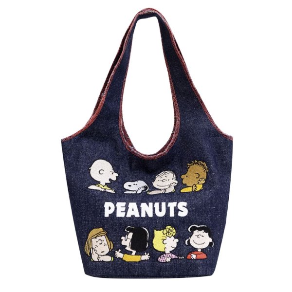 Snoopy canvas embroidered hand-held shoulder tote bag 男女兼用 スヌーピーキャンバスデニム刺繍ショルダートートバッグ 通学 通勤