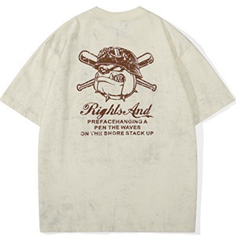 unisex Baseball Bulldog Print Wash T-shirt Short Sleeve T-Shirt ベイスボールブルドッグプリントヴィンテージスタイウォッシュド半袖ラウンドネック Tシャツ ユニセックス 男女兼用