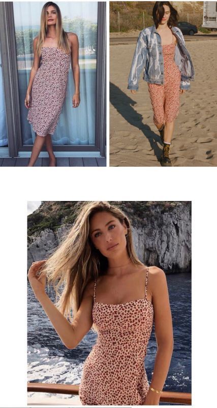 Women's maple leaf small floral print camisole dress 花柄キャミソールドレスロングフィッシュテール ワンピース