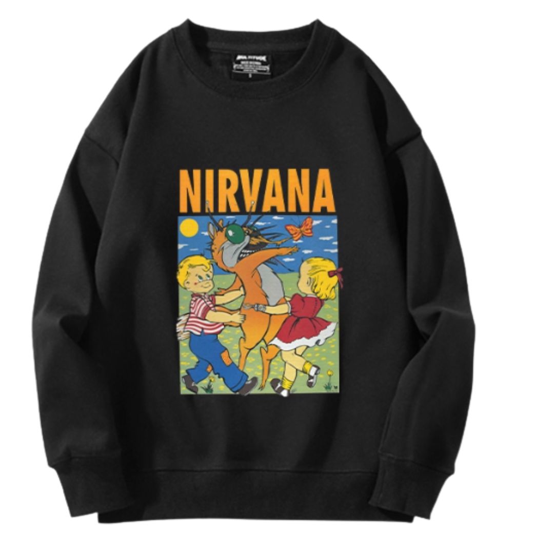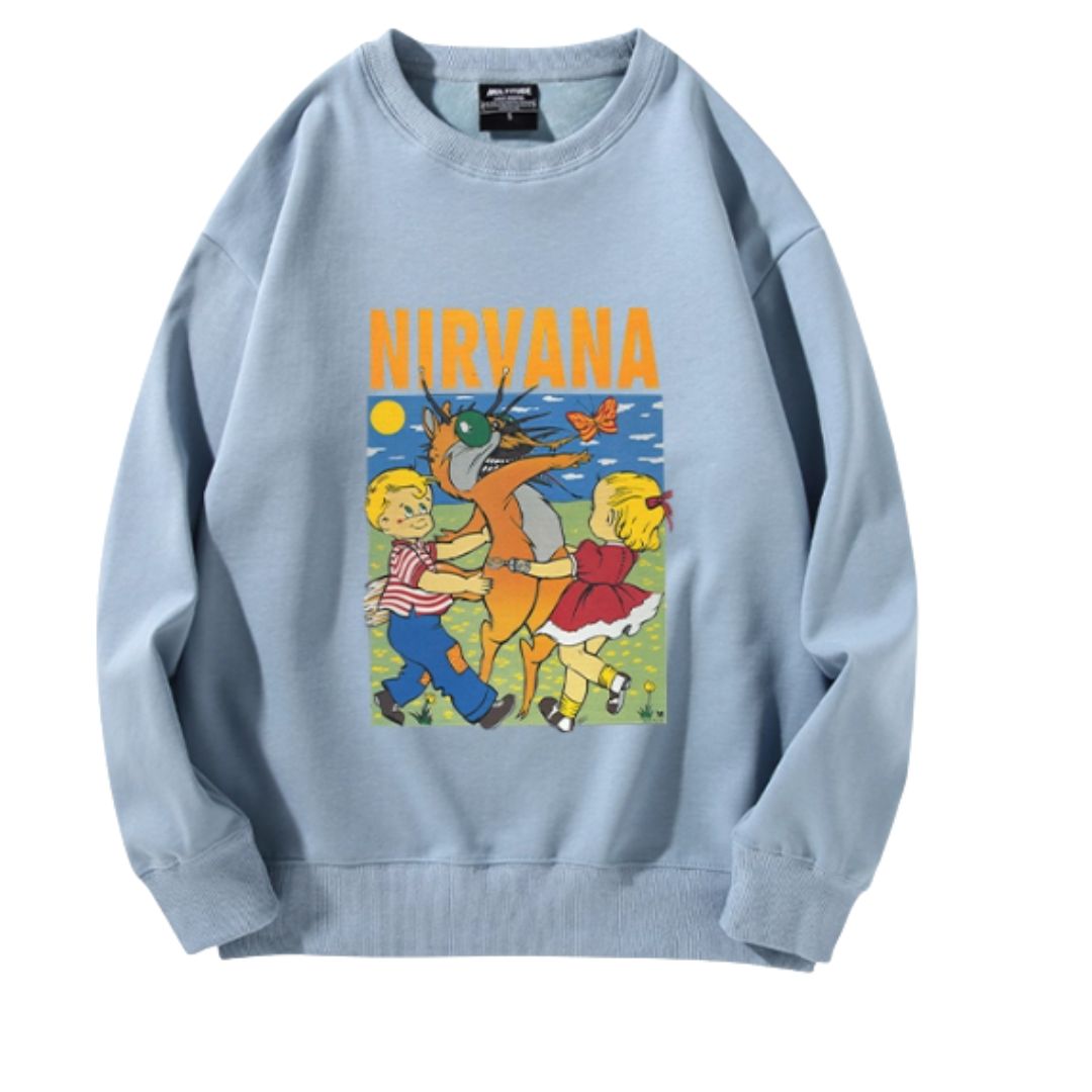 Unisex Nirvana band American Vintage Photo print long sleeve sweatshirt pullover ユニセックス男女兼用ニルヴァーナ バンドアメリカンヴィンテージフォトプリント長袖スウェットプルオーバーラウンドネック