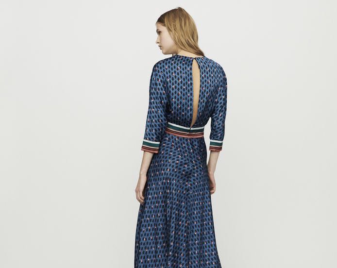 レトロフローラル7分袖ひざ下丈ロングドレス ワンピース