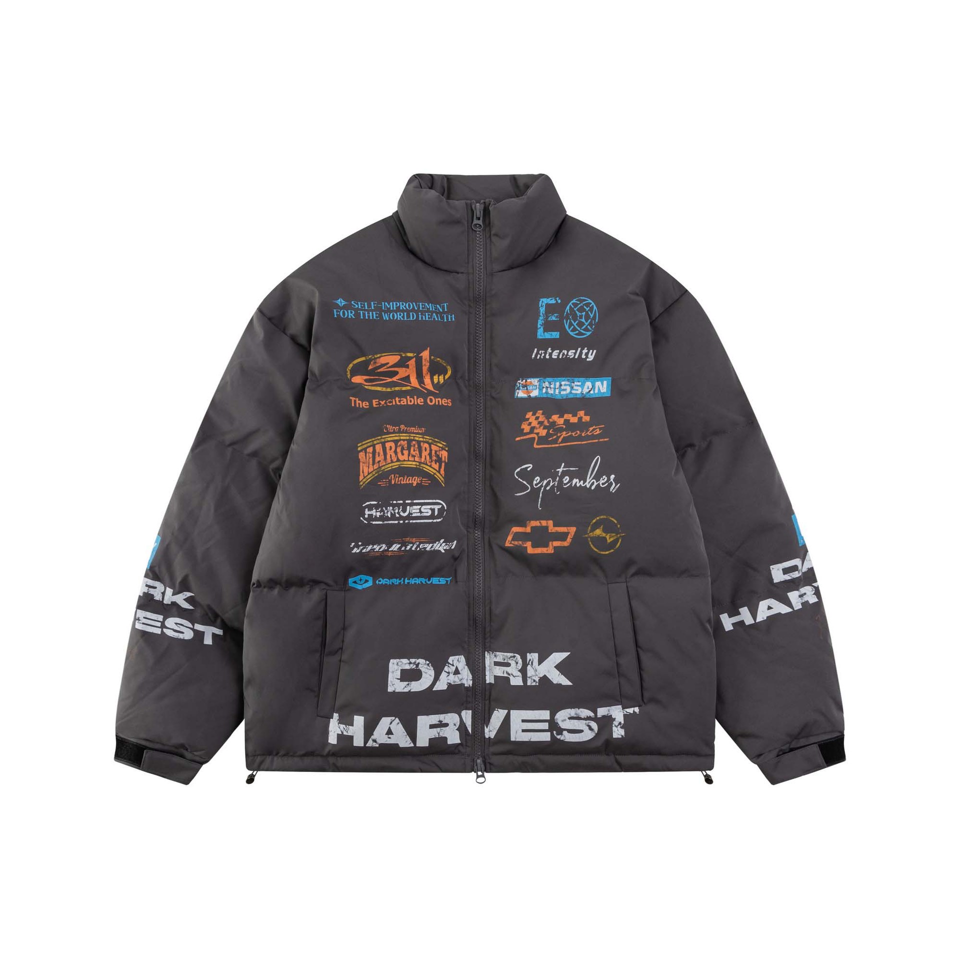 DARK HARVEST Alphabet Print Stand Collar Down Jacket ユニセックス 男女兼用アルファベットレターペイント ダウンジャケットコート ジャンパー スタジャン