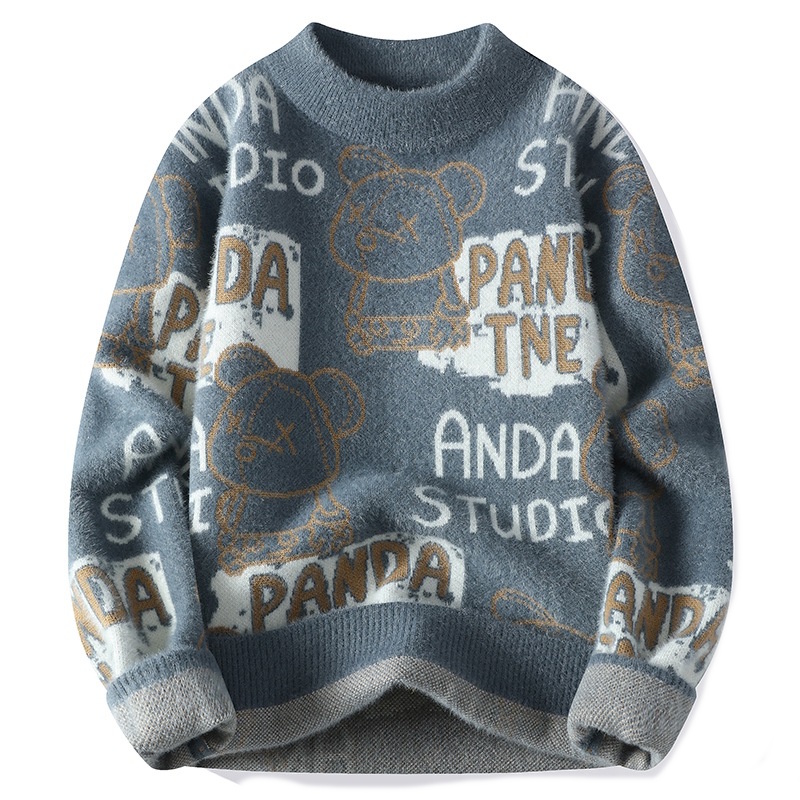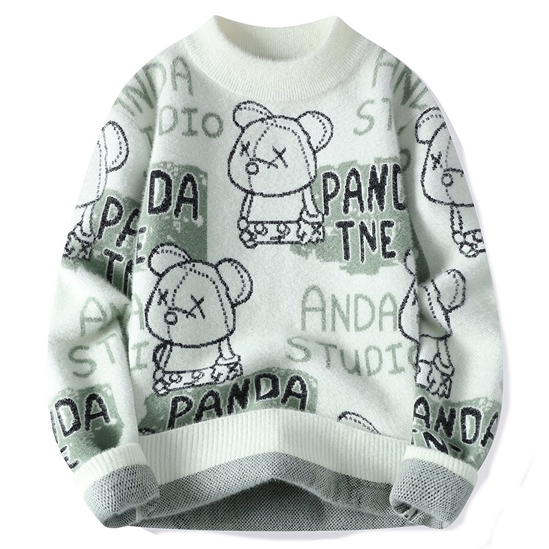 Unisex BE@RBRICK x KAWS knitted round neck sweater 男女兼用ベアブリック&カウズ編み込みラウンドネック厚手セーターニット