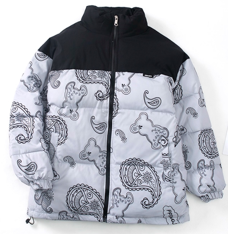 Unisex Paisley bandana pattern bear down jacket coat ユニセックス 男女兼用ペイズリーバンダナ柄ベア熊中綿ダウンフーディジャケットコート ジャンパー