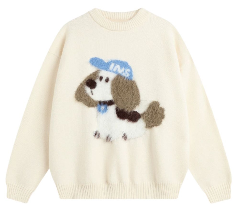 Puppy knitted crew neck sweater knitted パピー編み込み丸首クールネックセータープルオーバー