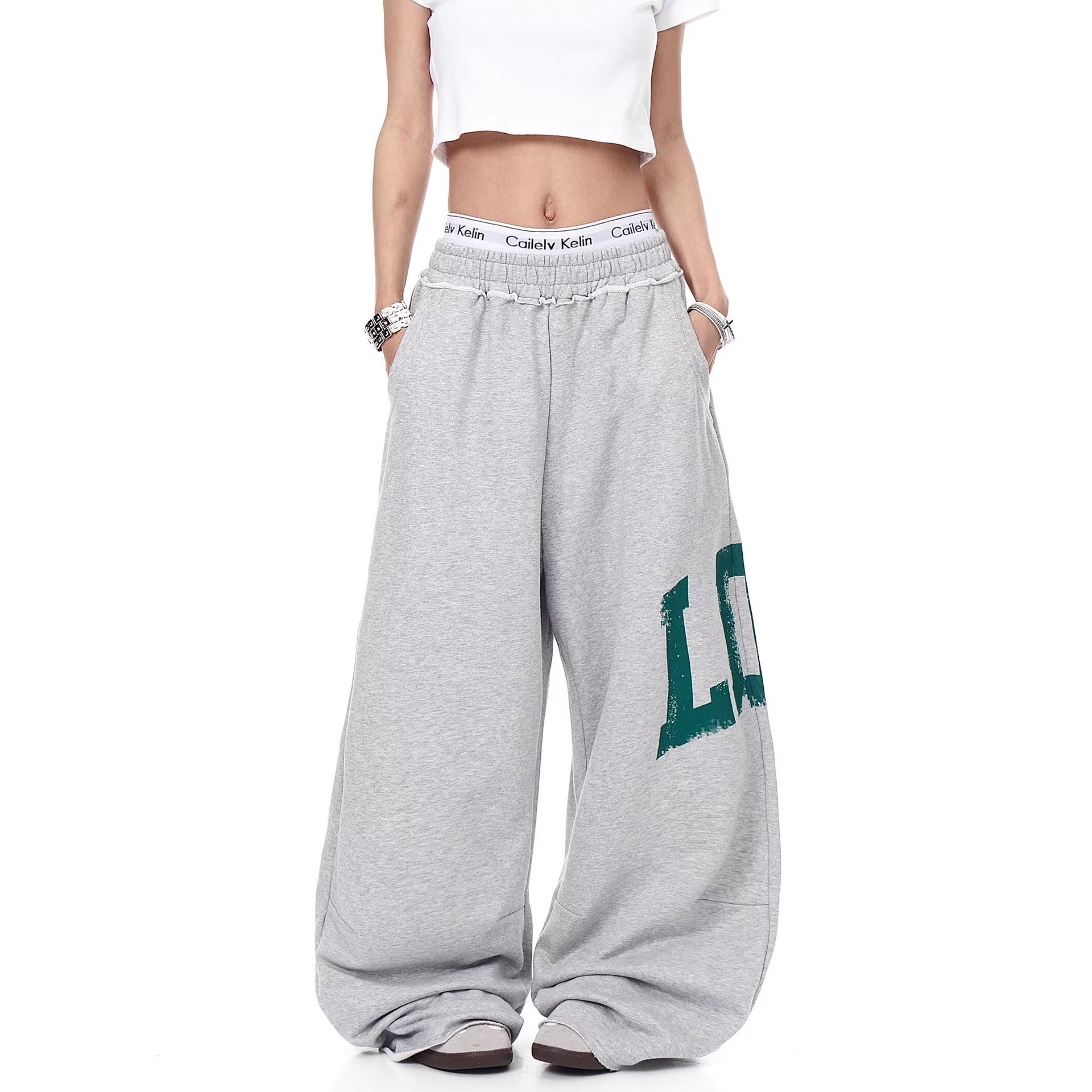 Unisex LDN logo sweatpants trousers Grey Marl Monster Joggers 男女兼用 ユニセックス LDN 手書き風ロゴ ワイド スウェットパンツ