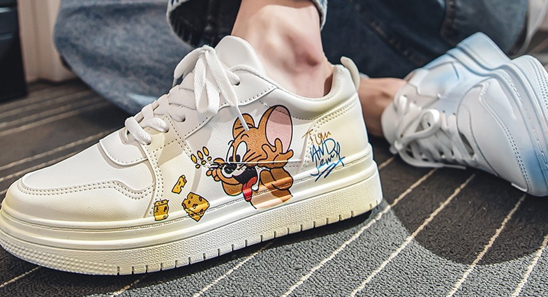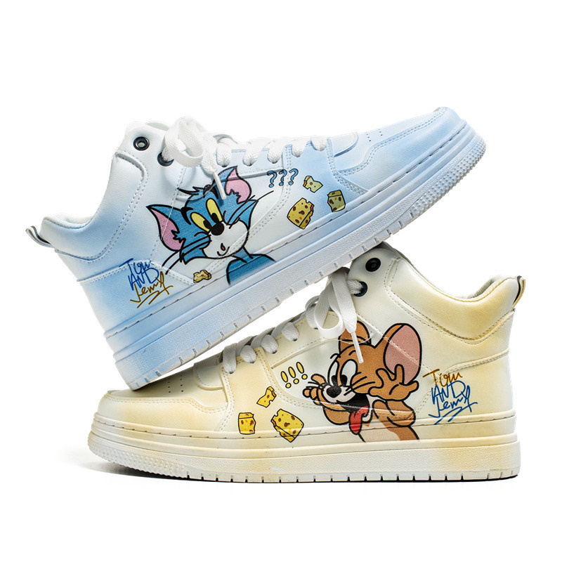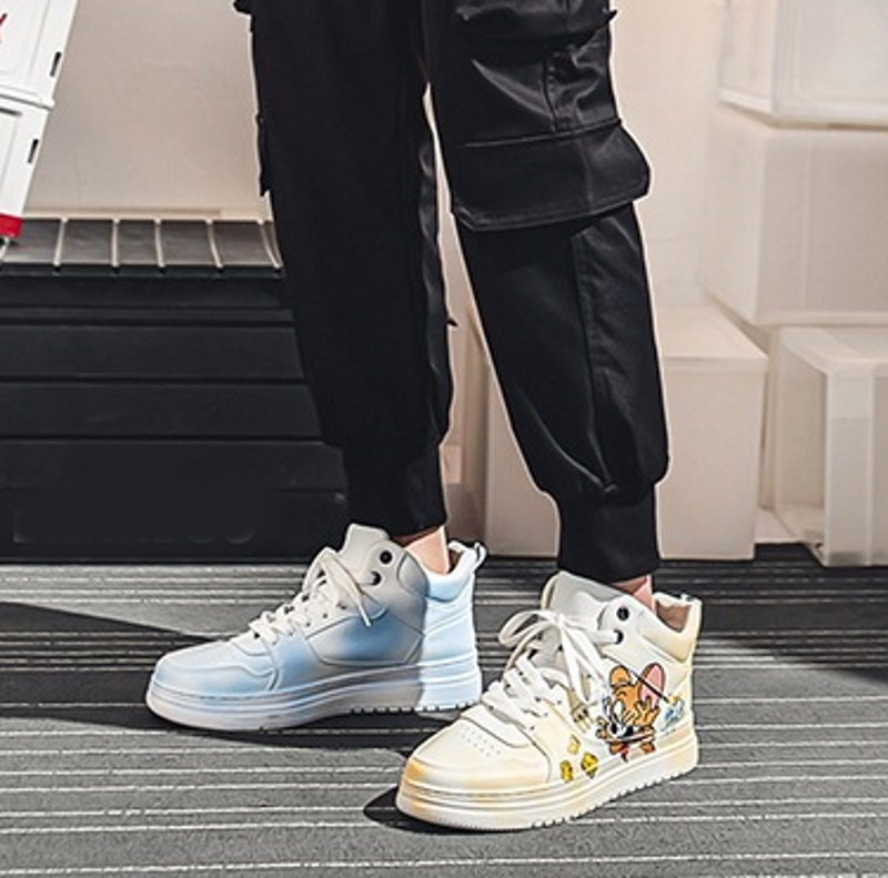 Tom and Jerry high cut leather lace-up sneakers 男女兼用 ユニセックストムとジェリートム&ジェリーハイカットハイトップレザーレースアップスニーカー