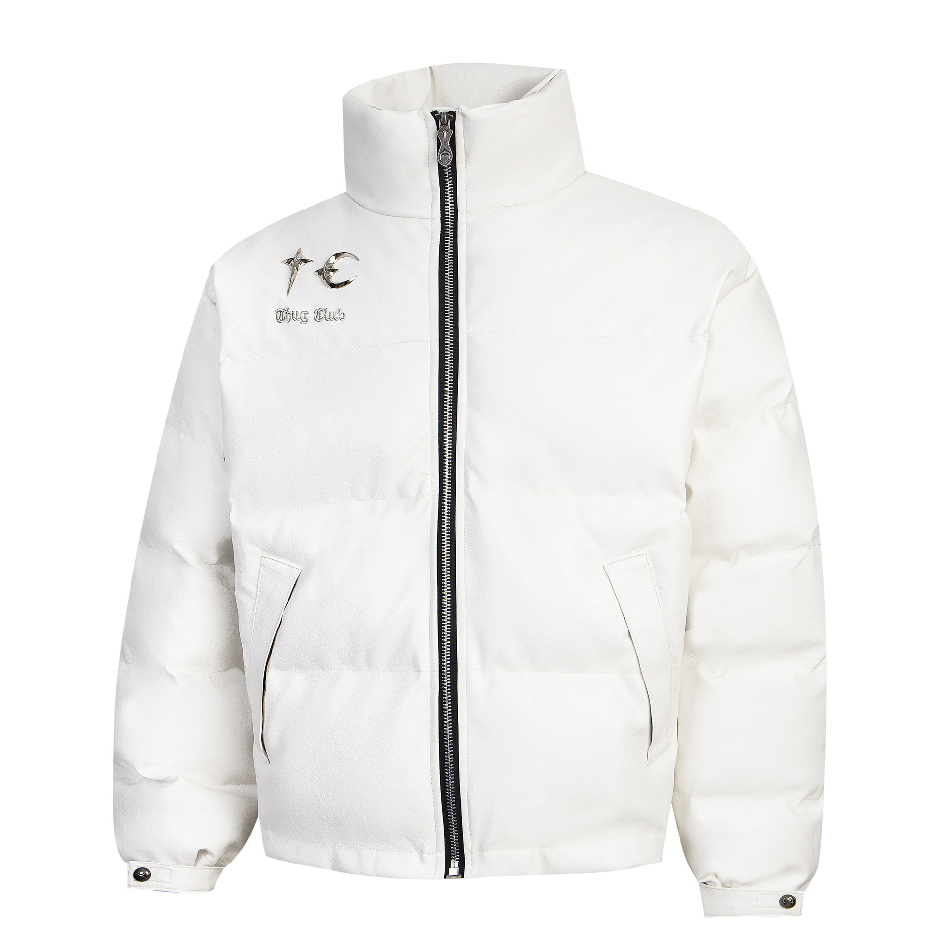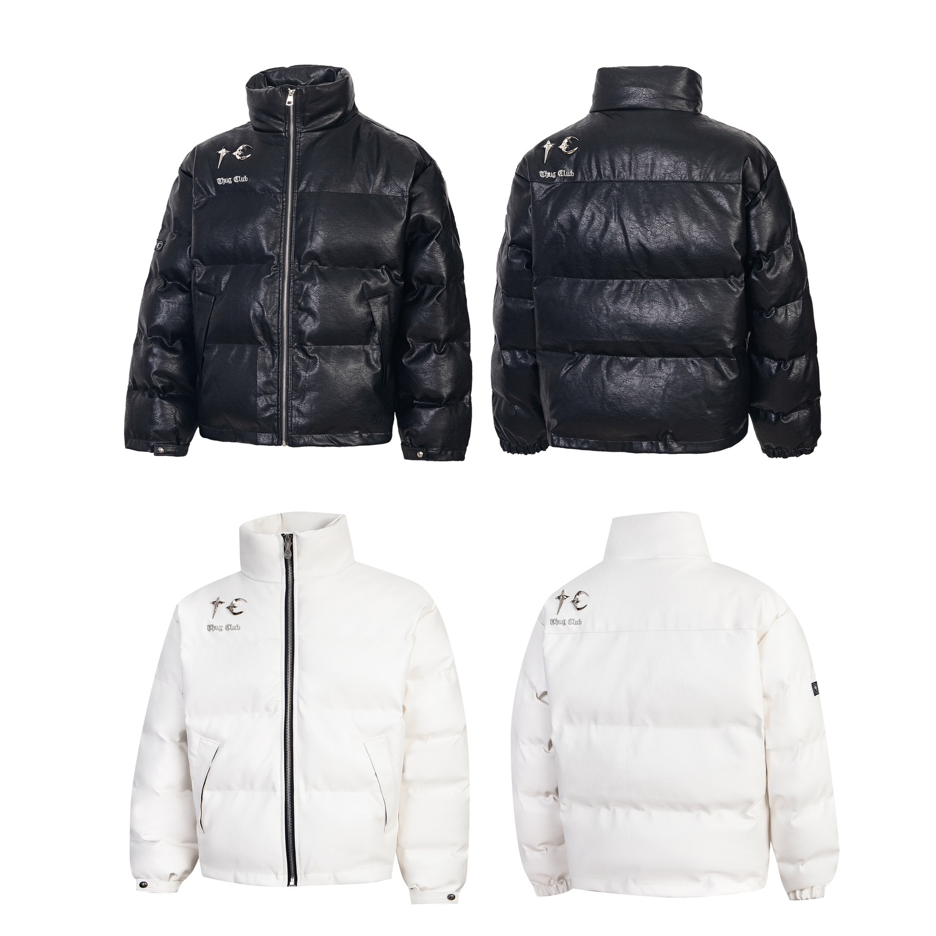 Unisex Leather Alphabet Star Moon Stand Collar Zip-Up Down Jacket coat ユニセックス 男女兼用レザーアルファベット星月スタンドカラージップアップダウンジャケットコート