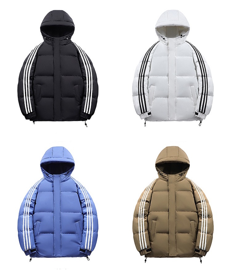 3 Stripe Down Short Hoodie Coat Jacket ユニセックス 男女兼用 スリーストライプショート丈フーディダウンコートベンチコート