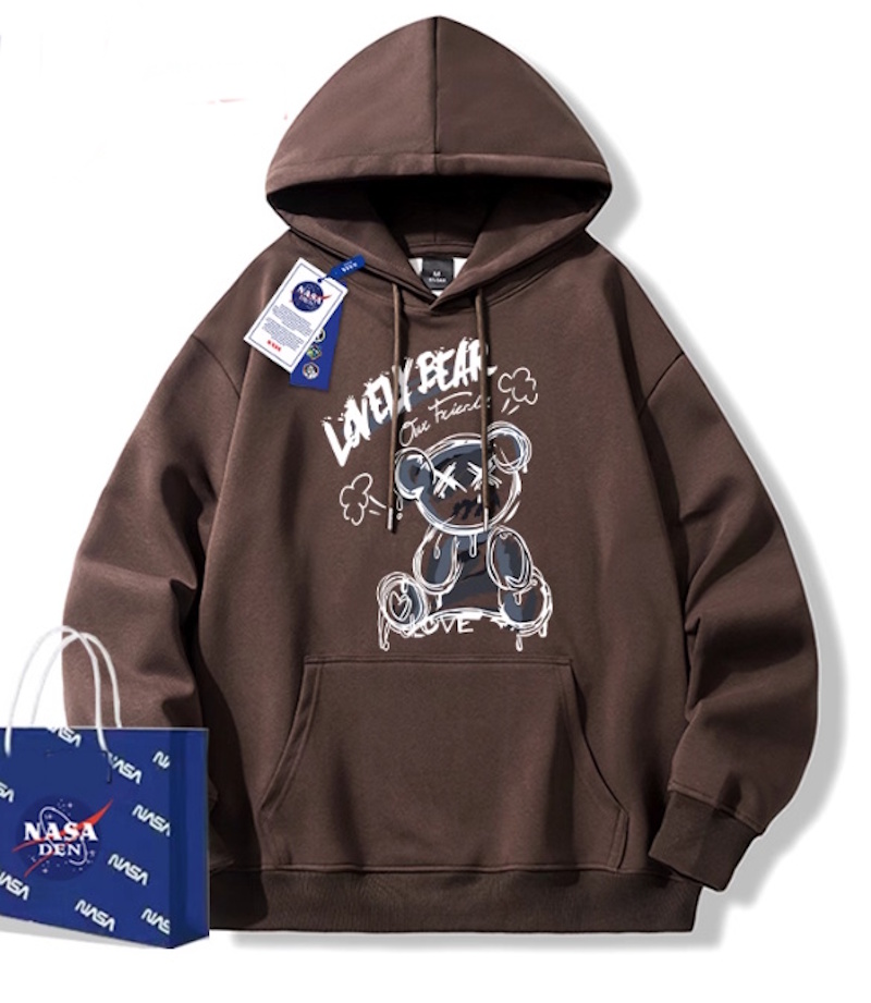NASA Muddy Bear Print Hoodie ユニセックス男女兼用 ナサ×ヌーディベア プリント スウェット パーカートレーナー