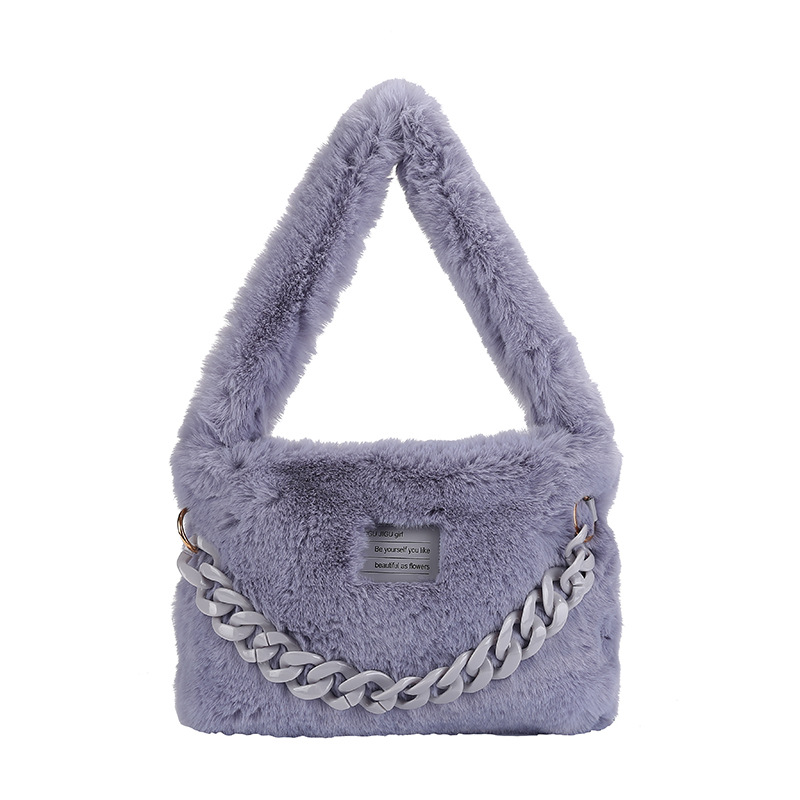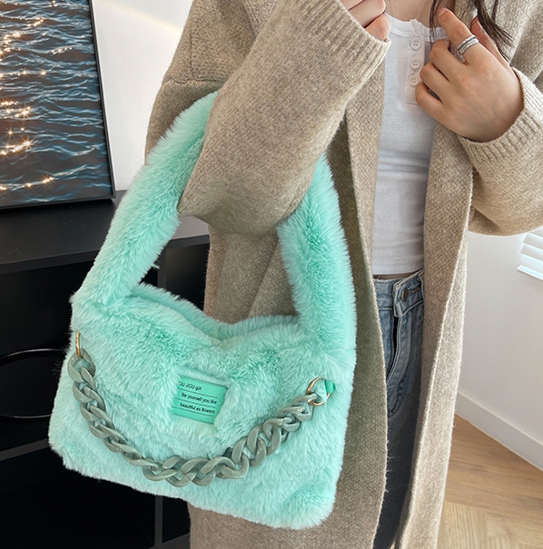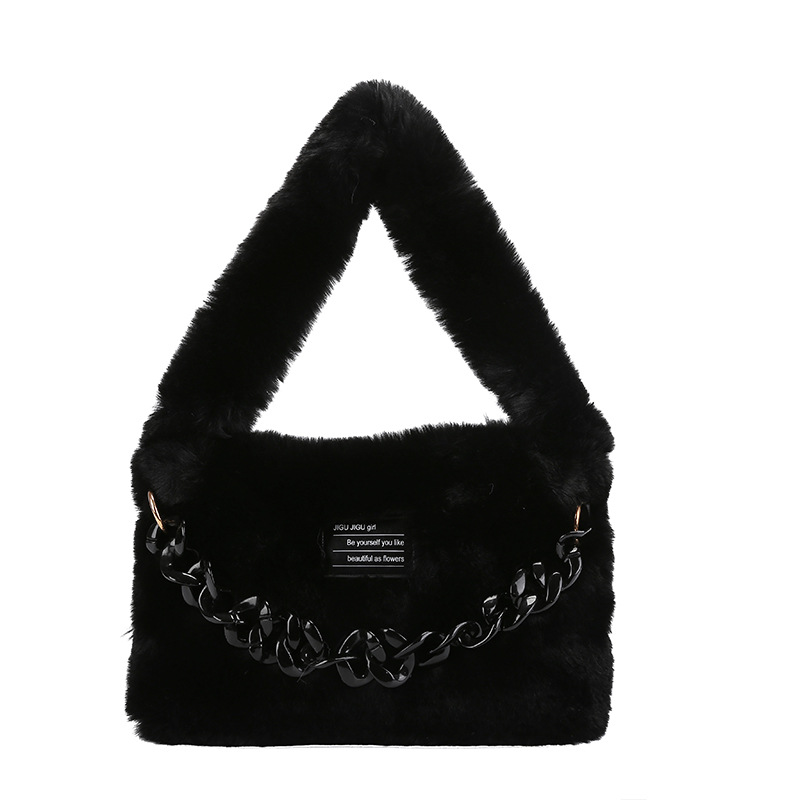 Fluffy colorful fur tote shoulder bag with chain モコモコファーカラフルチェーン付きトートショルダーアンダーアームバッグ