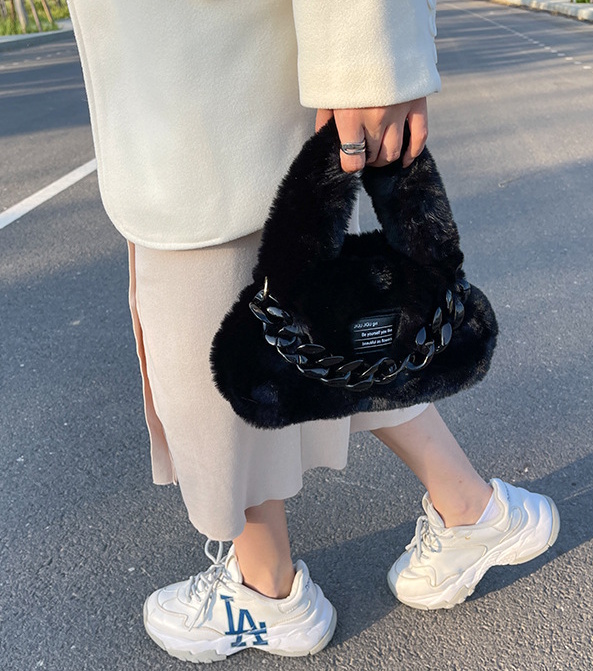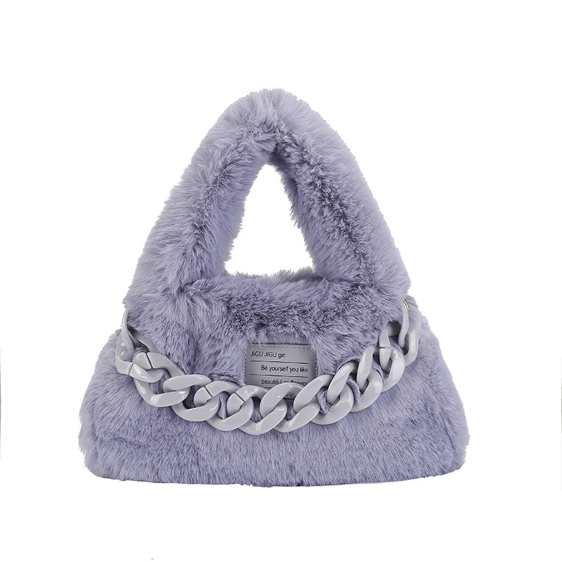 Fluffy fur trumpet colorful chain tote shoulder Underarm bag モコモコファートランペット型カラフルチェーン付きトートショルダーアンダーアームバッグ