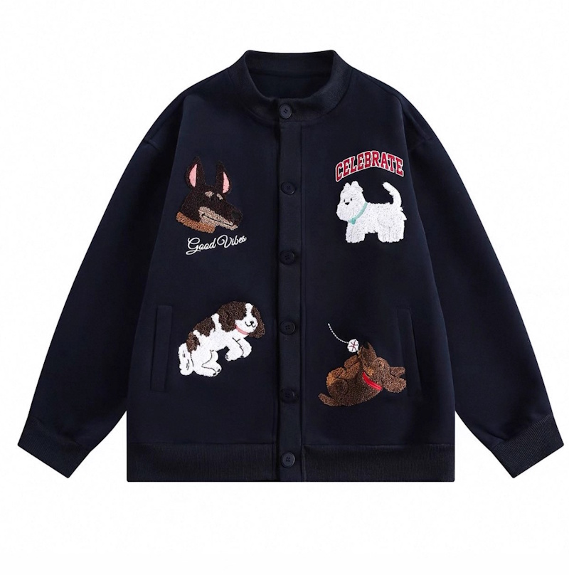 Dog appliqué embroidered sweat jacket Stadium jacket blouson ユニセックス 男女兼用 ドッグアップリケ刺繍スウェットジャケット スタジアムジャケットカーディガン