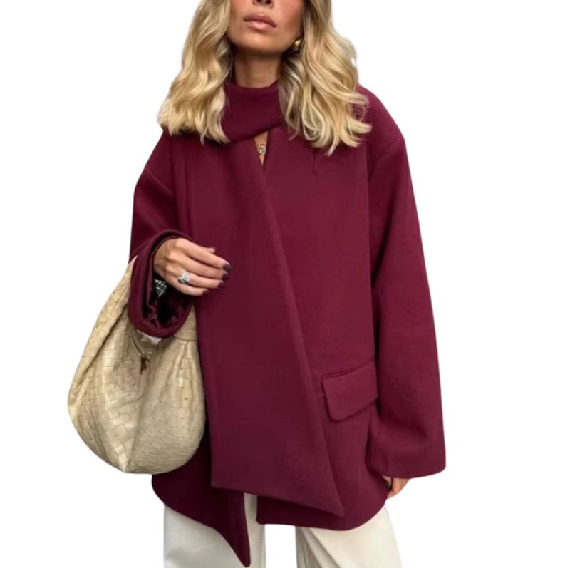 Scarf V-neck coat jacket マフラー付きVネックハーフ ジャケットコート