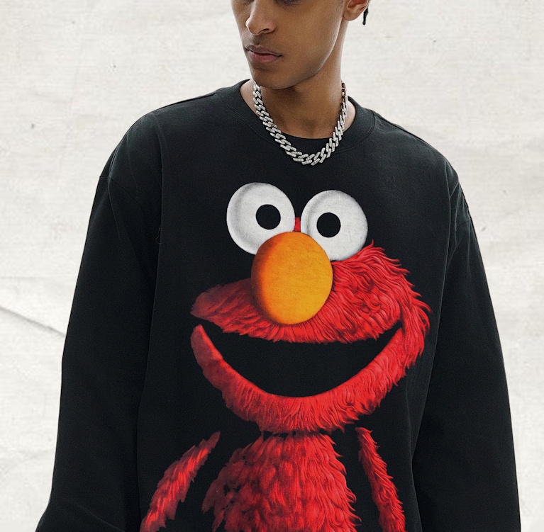 unisex Sesame Street Cookie Monster Big Print Long Sleeve Round Neck T-Shirt ユニセックスセサミーストリートクッキーモンスター ビッグプリント長袖ラウンドネック Tシャツ