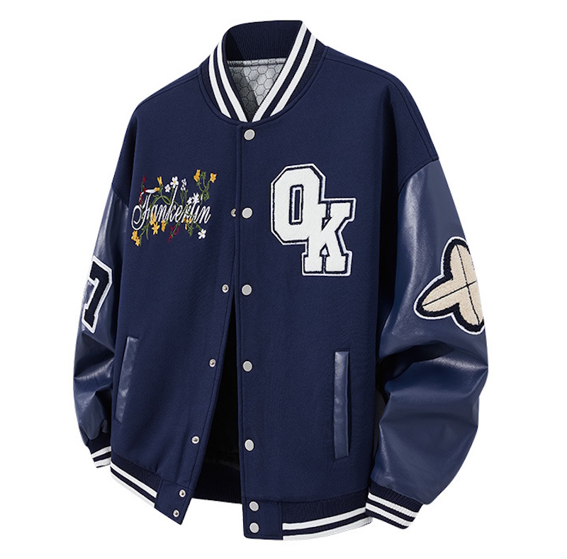 OK & Flower Embroidery jacket Jumper stadium jacket ユニセックス 男女兼用 刺繍OK&フラワー スタジャン ジャケット MA1 ブルゾン