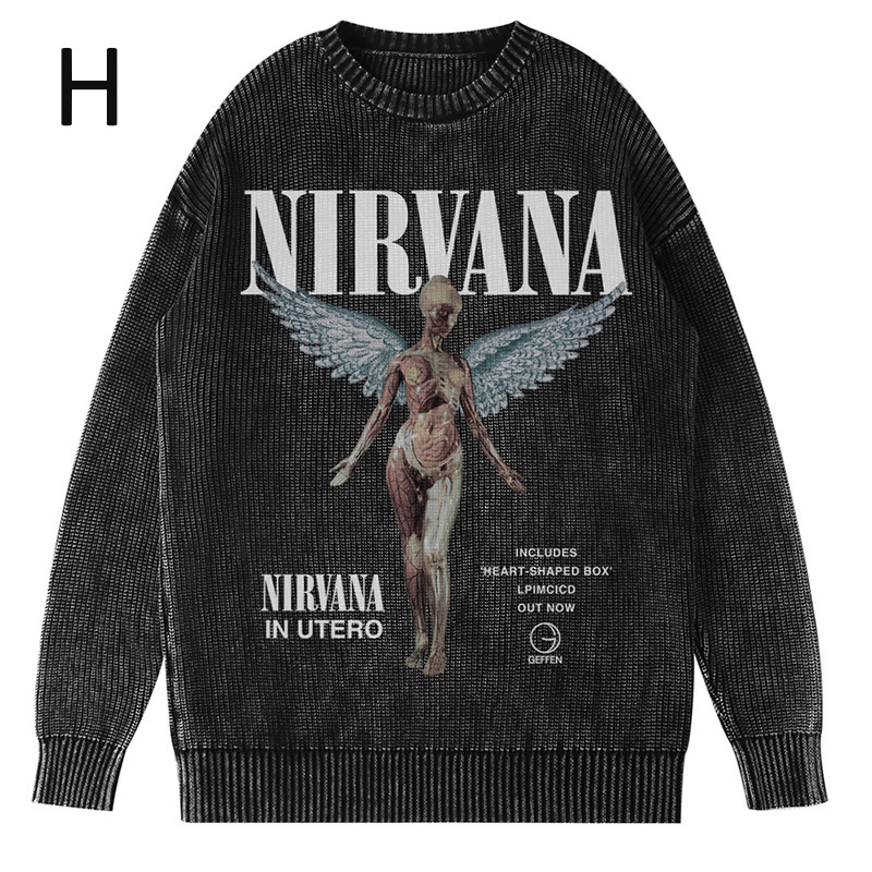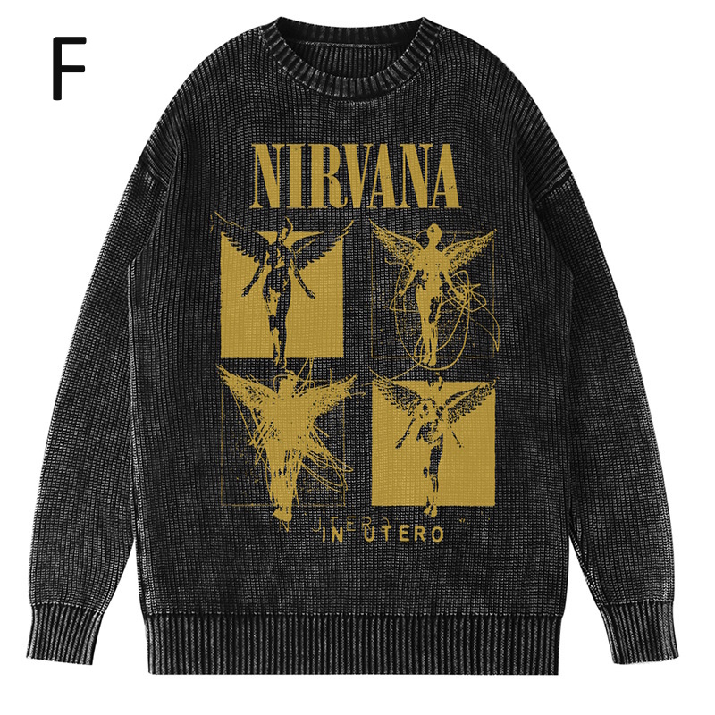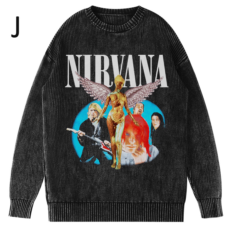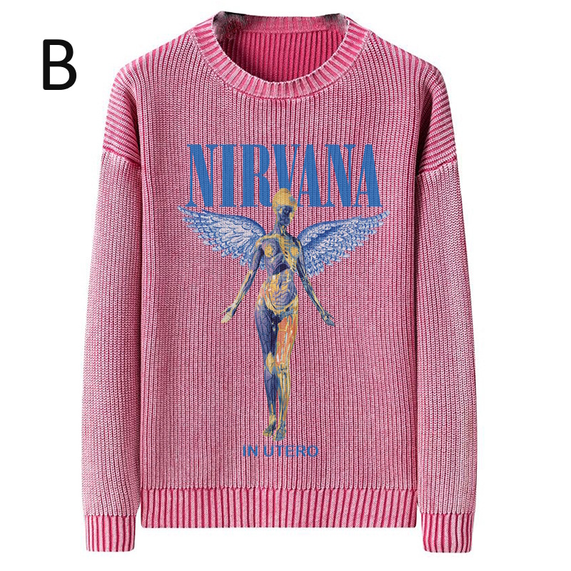- > Unisex Nirvana Wash Retro Crew Neck Cotton Blend Sweater ニルヴァーナバンドフォト&グラフィックヴィンテージスタイルプリント セーターニットトレーナー ユニセックス 男女兼用