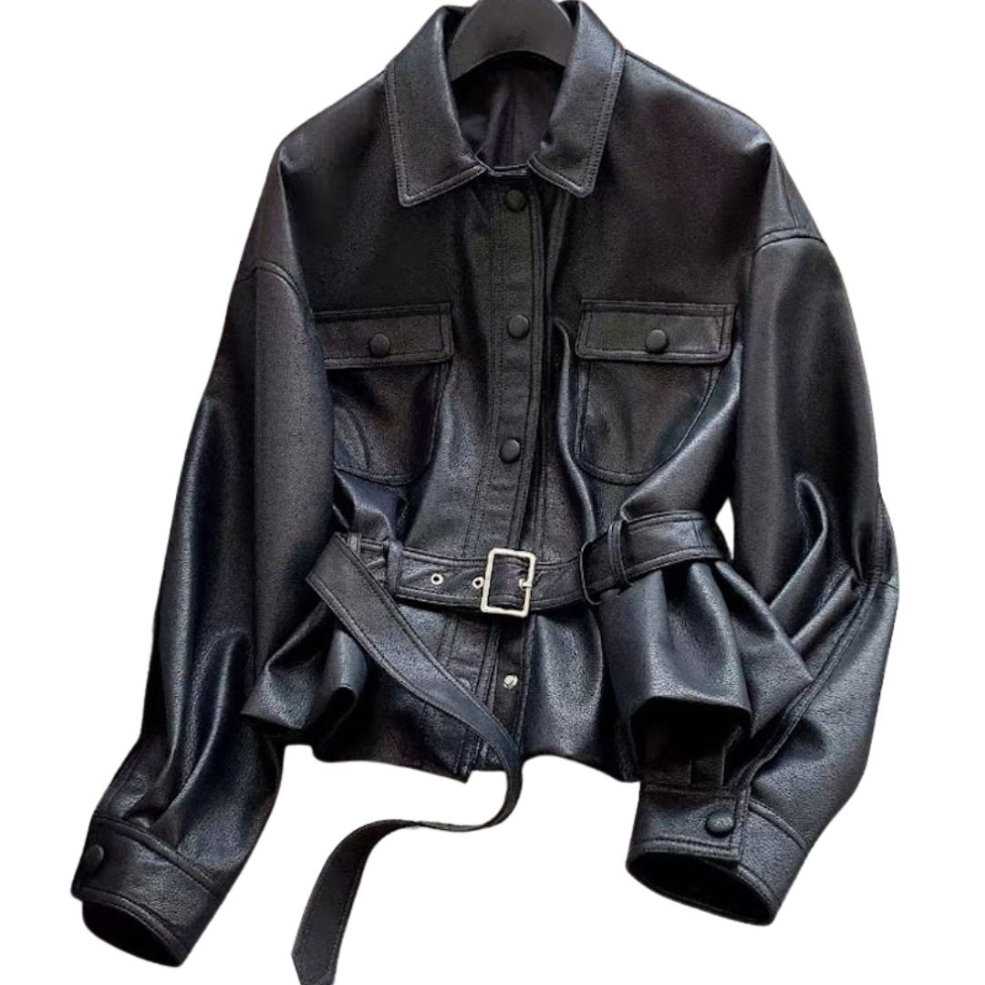Waist belt leather jacket coat ウエストベルトレザージャケットコート