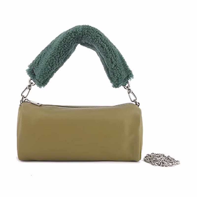 Lambskin fur handle cylindrical tote shoulder cross-body bag  ラムスキンファーハンドル筒型トートショルダークロスボデーバッグ