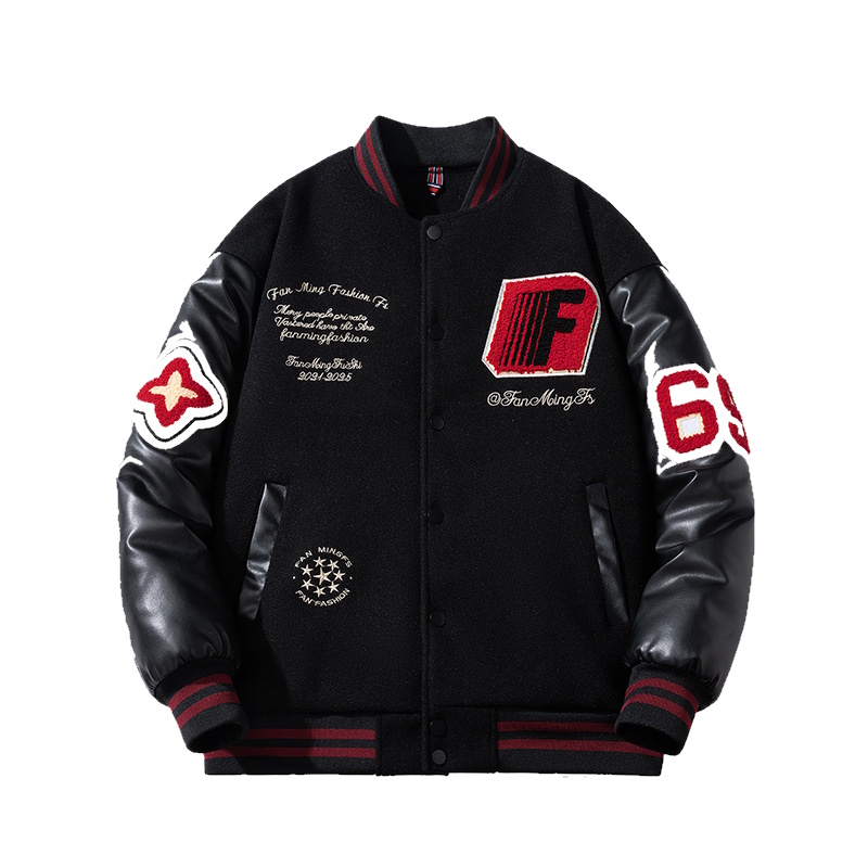 69 number and letter logo embroidered patchwork leather sleeves inner lining Stadium jacket ユニセックス男女兼用69&レターロゴ刺繍キルティングインナータスタジャンスタジアムジャンブルゾン