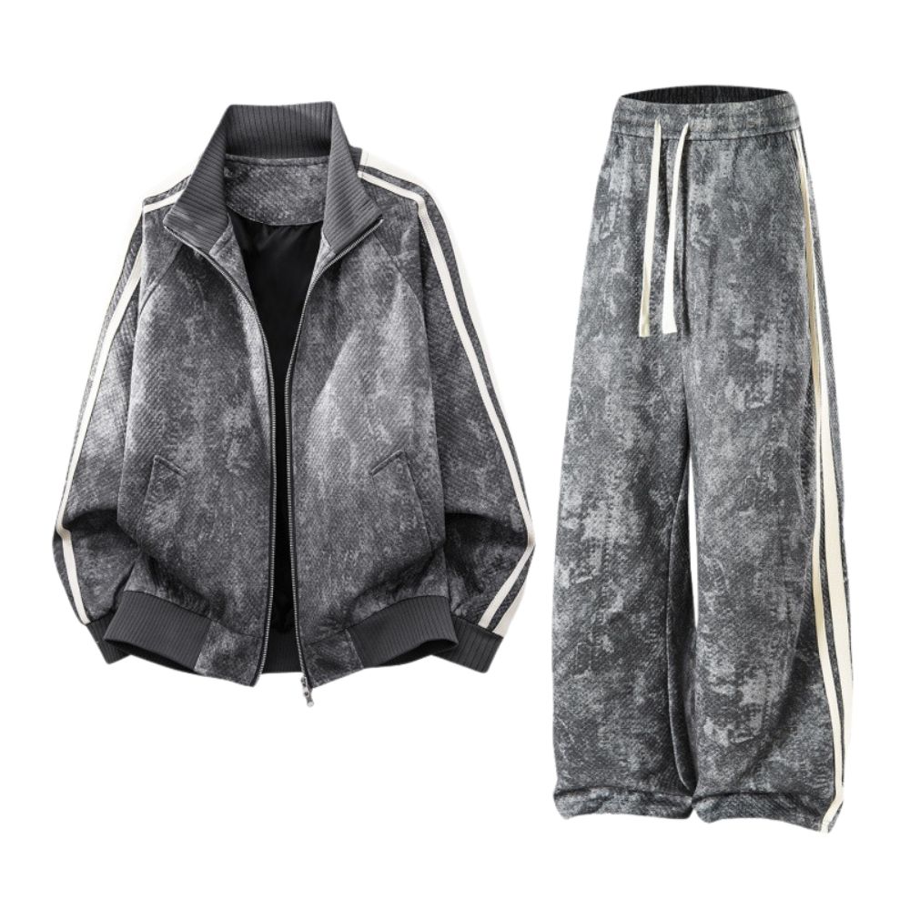 Men & Women Tie-dye two stripes Setup Jacket and Pants Set 2本ラインジップアップ&パンツセットアップユニセックス男女兼用スウェット