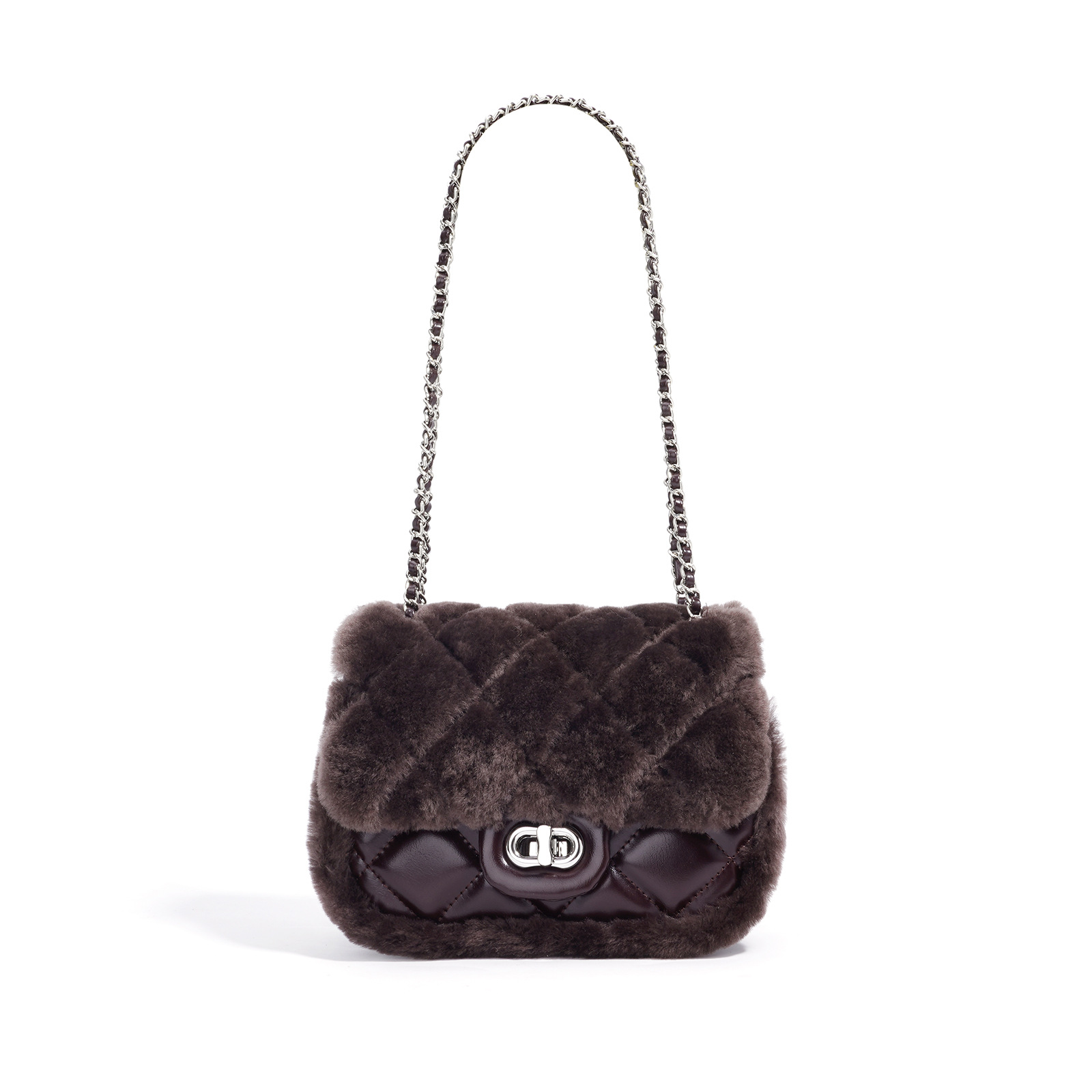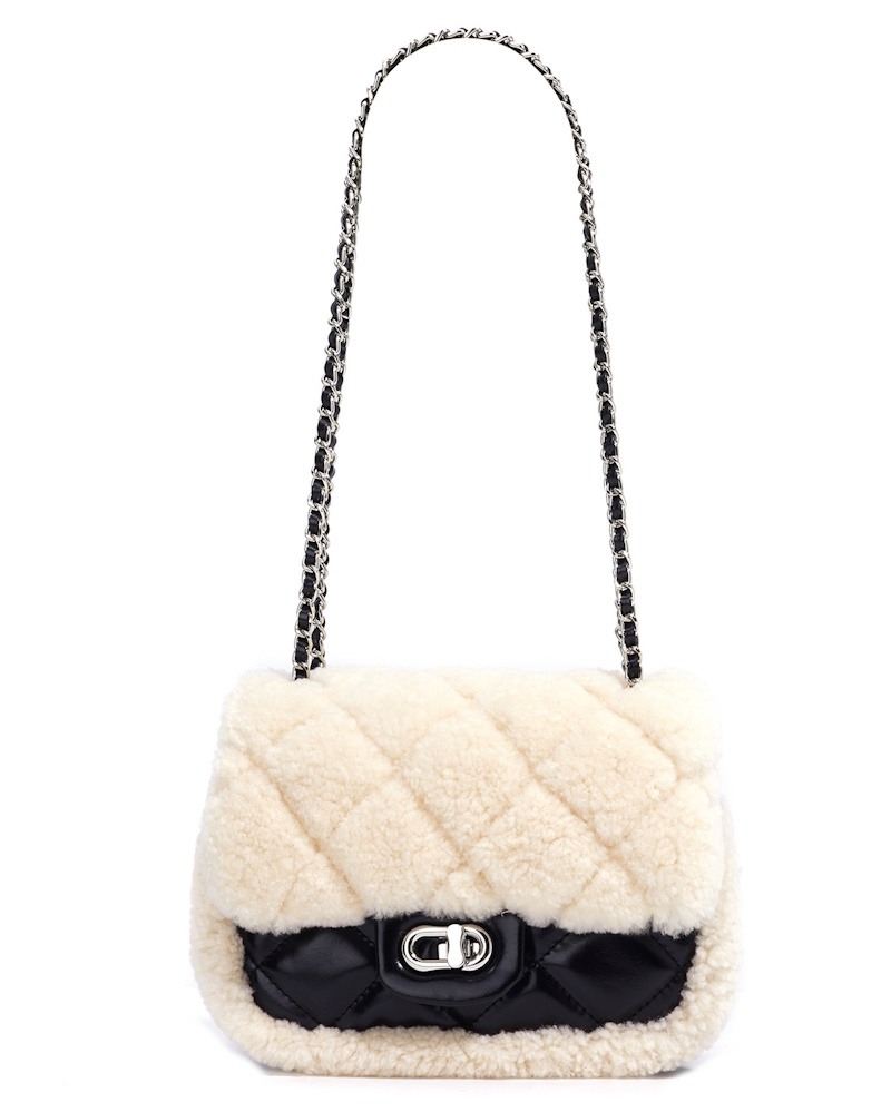 Fluffy fur cover quilted leather chain tote shoulder pochette bag モコモコファーカバーキルティングレザーチェーントートショルダーポシェットバッグ