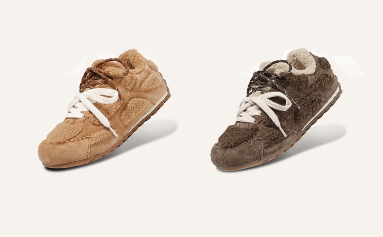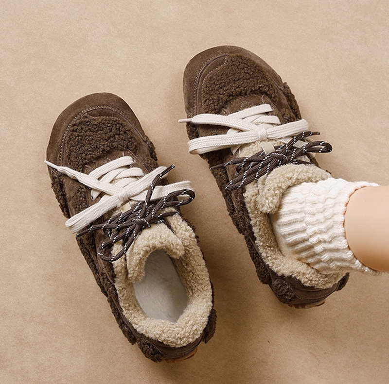 Women's Fur-trimmed leather lace-up platform sneakers ファー付きレザー厚底レースアップスニーカー