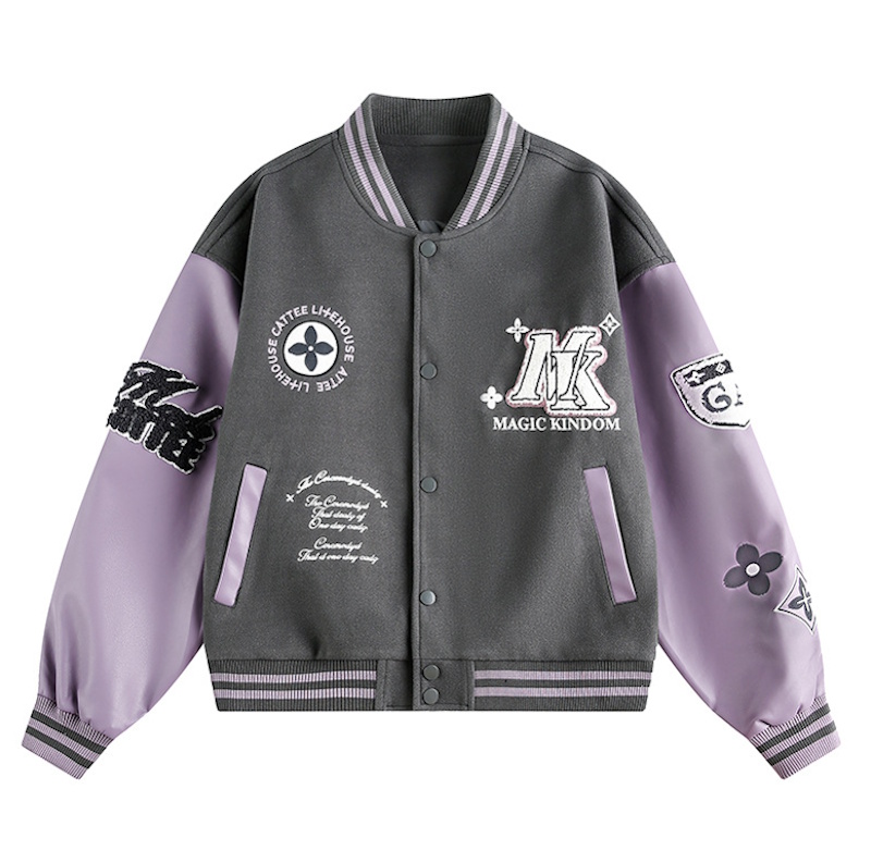 KK logo emblem embroidery leather sleeves Stadium jacket ユニセックス男女兼用KKレターロゴ刺繍スタジャンスタジアムジャンブルゾン