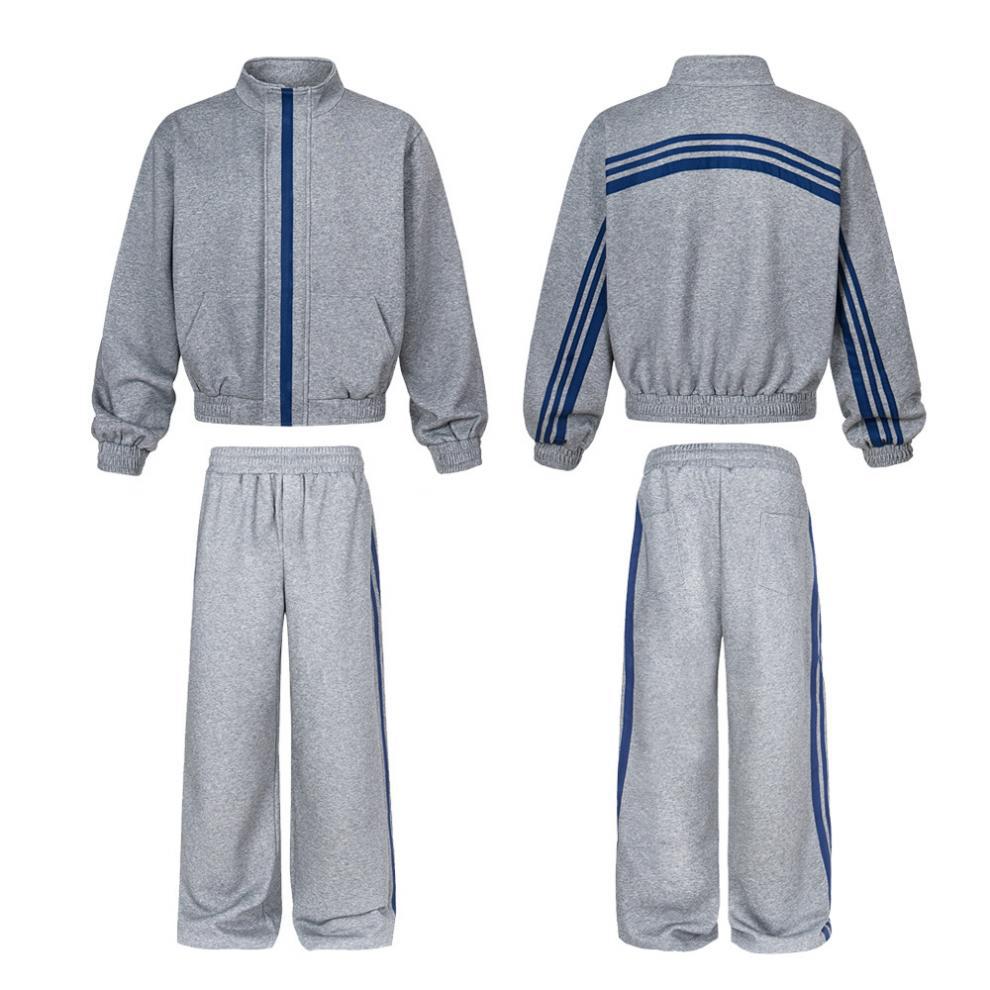 Unisex Three Stripes Stand Collar Sweatshirt & PantsJacket + Pant ユニセックス 男女兼用 スタンドカラージバック3ラインジップアップ セットアップ 上下