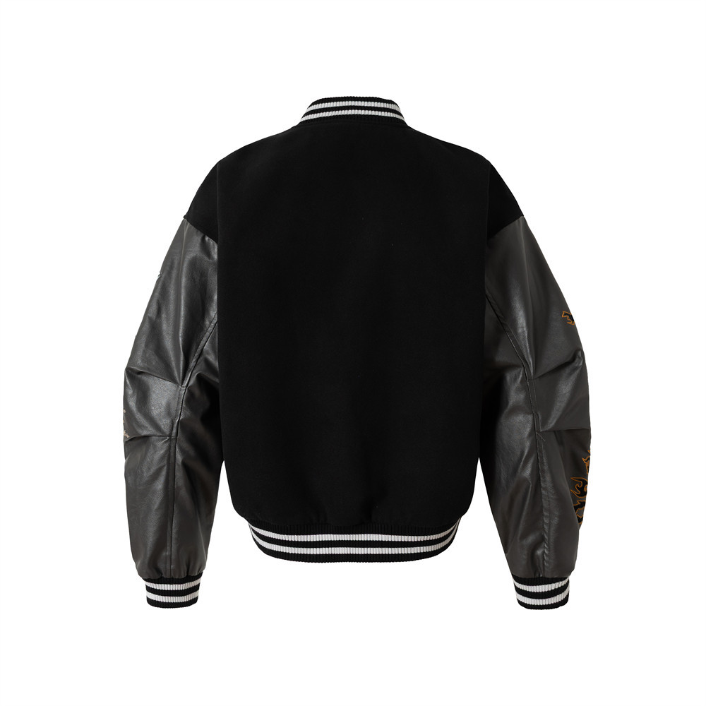 American street fashion patchwork sleeve embroidery totem retro baseball jacket Stadium jacket ユニセックス男女兼用パッチワーク袖刺繍トーテムレトロスタジャンスタジアムジャンブルゾン