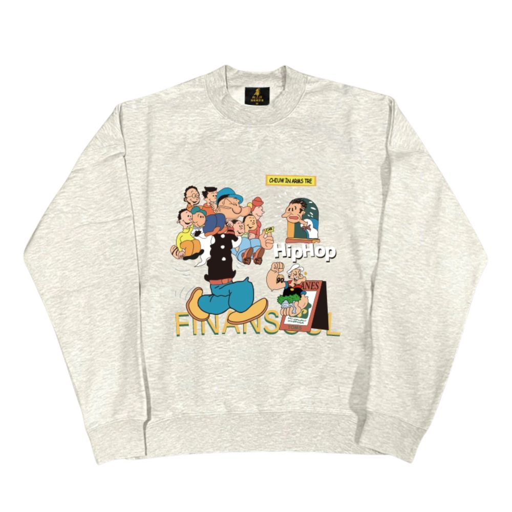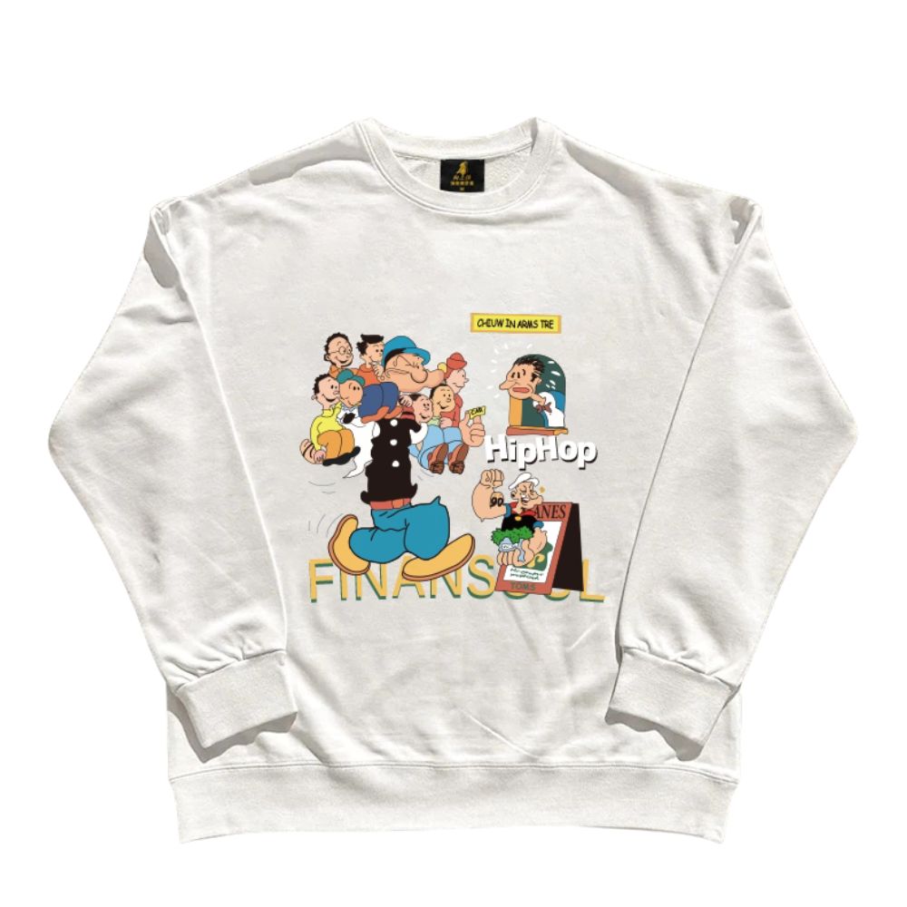 Unisex Hip Hop Popeye Family Print Round Neck Sweatshirt 男女兼用 プリント スウェット プルオーバー トレーナー