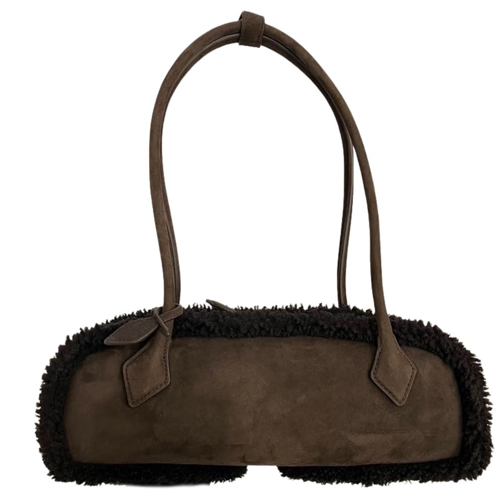 Frost plush fur piping horizontal simple suede shoulder suede tote bag フロストプラッシュファーパイピング横長シンプルスウェードショルダートートバッグ