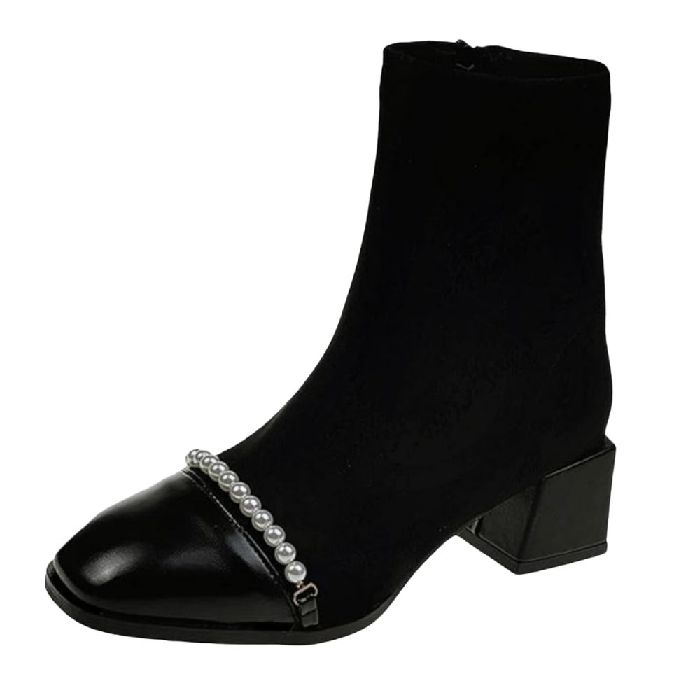 Women's Strech Pearl Casati Combat Short Ankle Boots ストレッチ パール アンクル ブーツ ショートブーツ ブーティー
