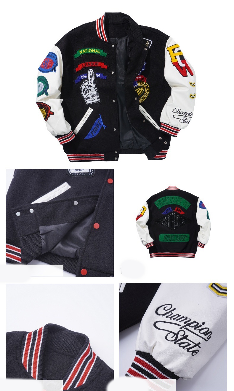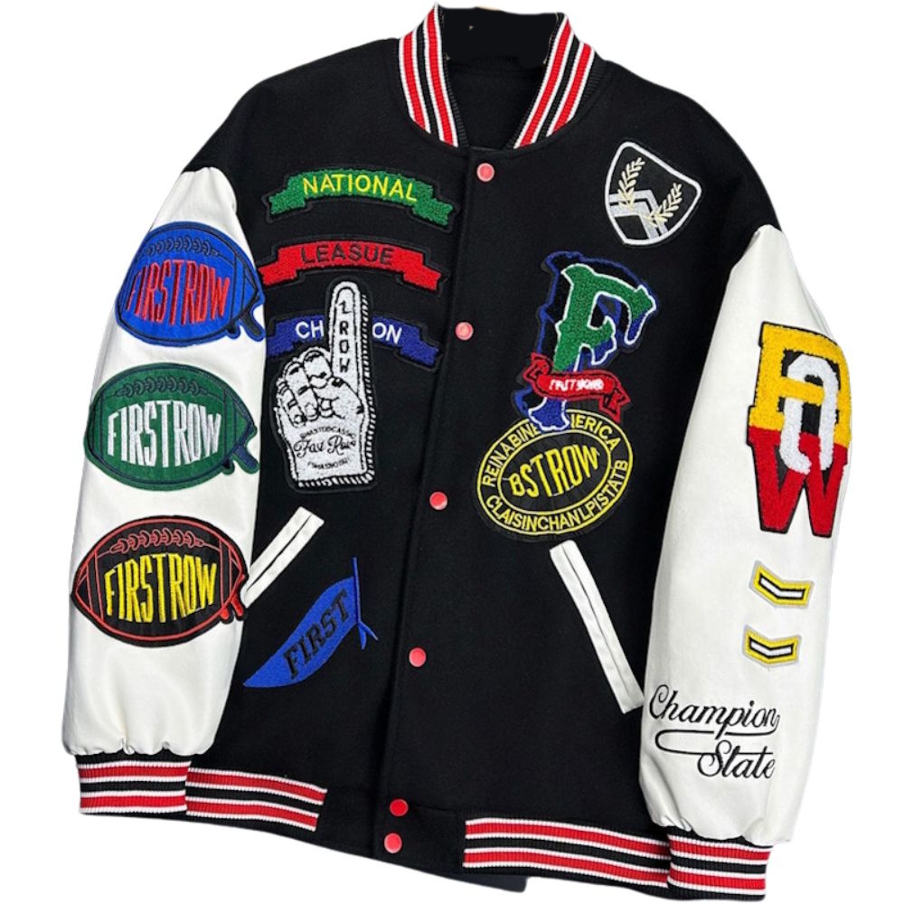 Emblem & Letter Logo Embroidered Retro Stand Collar Baseball Jacket Coat blouson ユニセックス 男女兼用 エンブレム&レターロゴ刺繍レトロスタンドカラー スタジャン ジャケットブルゾン