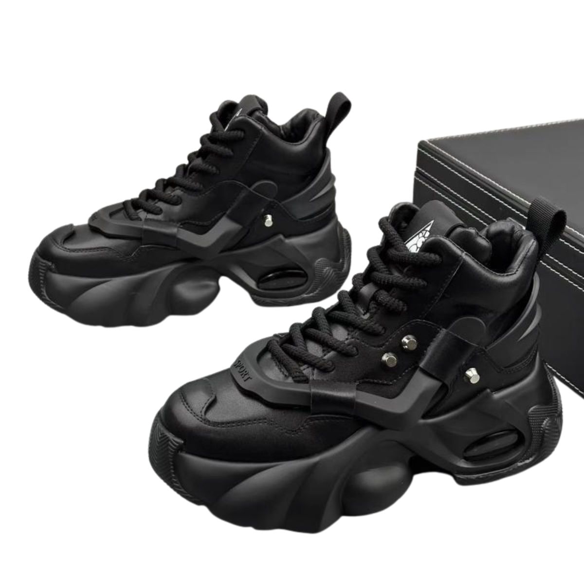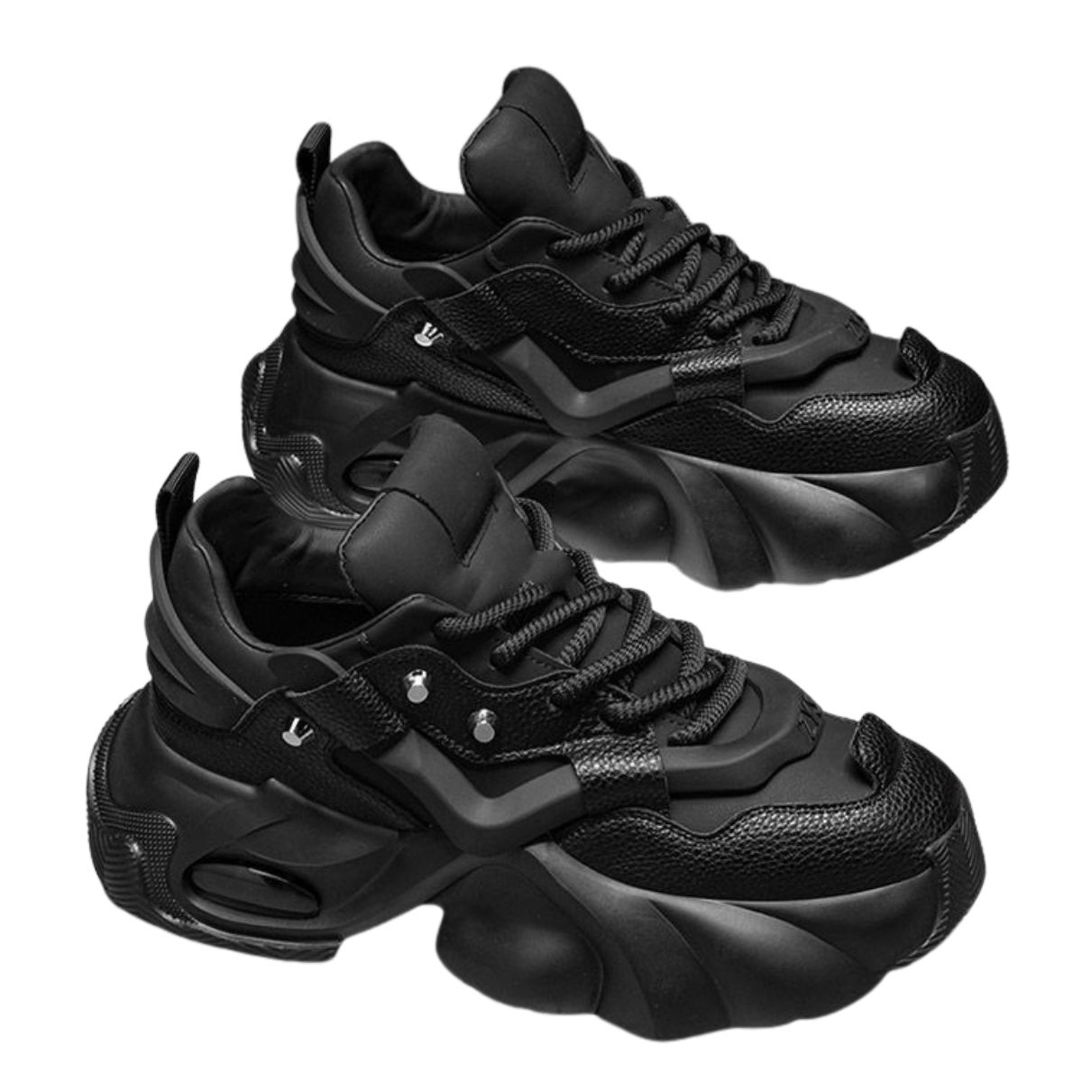 Men's platform lace-up sneakers with tire outsole Korean Y2K style メンズ 厚底 レースアップ 厚底 タイヤアウトソール スニーカー 韓国 Y2K ダットスニーカー