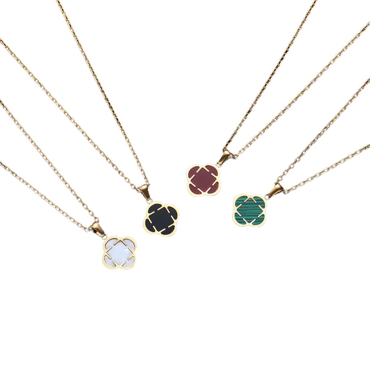 Clover Stone Shell Necklace 男女兼用 ユニセックス シルバー& ゴールド 四つ葉 クローバー 天然貝 ストーン ネックレス