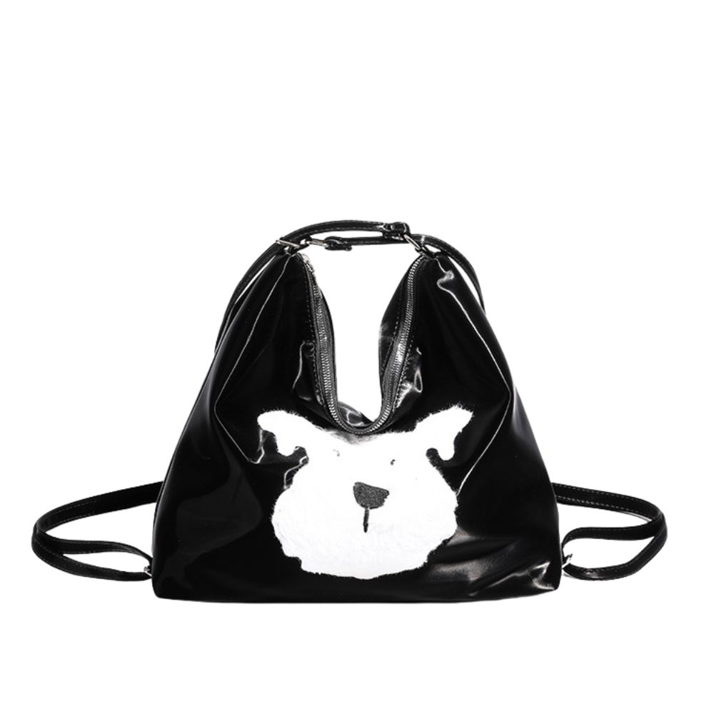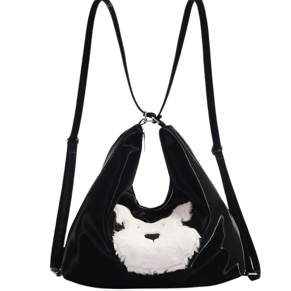 Fluffy dog appliqué tote shoulder backpack モコモコファードッグエンブレムトートショルダーバックパックリュックバッグ