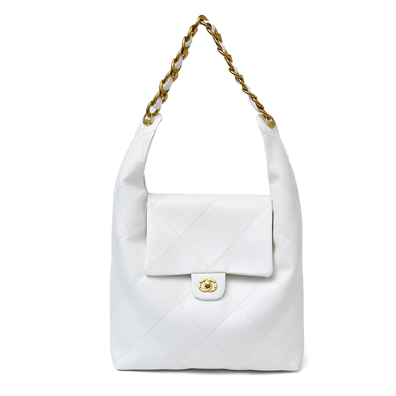 Quilted large capacity chain shoulder strap leather tote shoulder bag キルティングラージキャパシティーチェーンショルダーストラップ レザートートショルダーバッグ