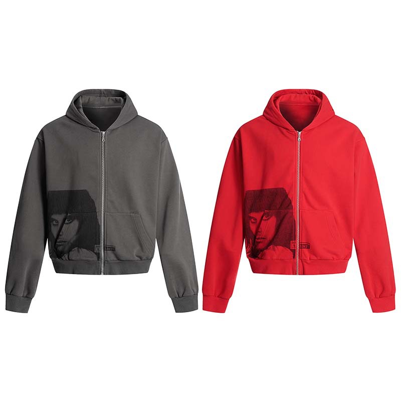 Face & Letter Logo Print Zip-Up Hoodie sweat ユニセックス 男女兼用フェイス&レターロゴプリントジップアッププリント スウェットパーカー