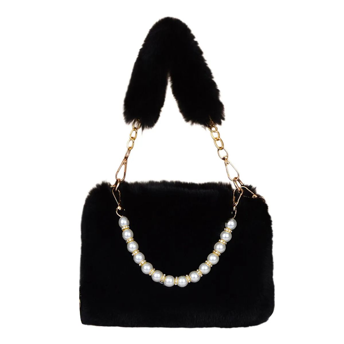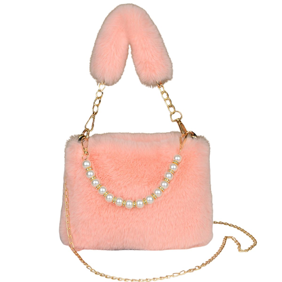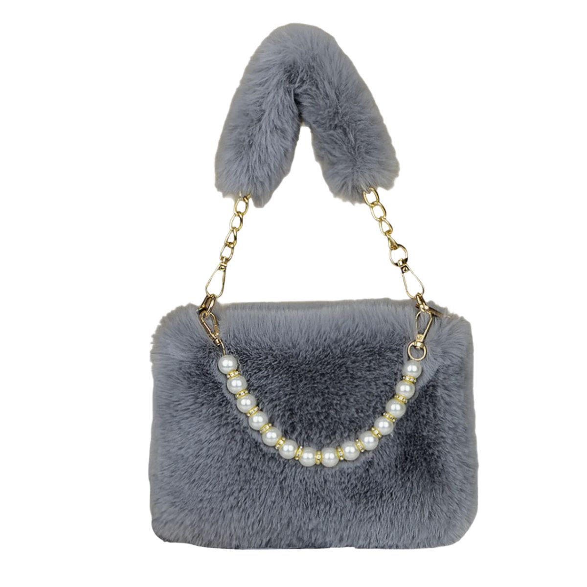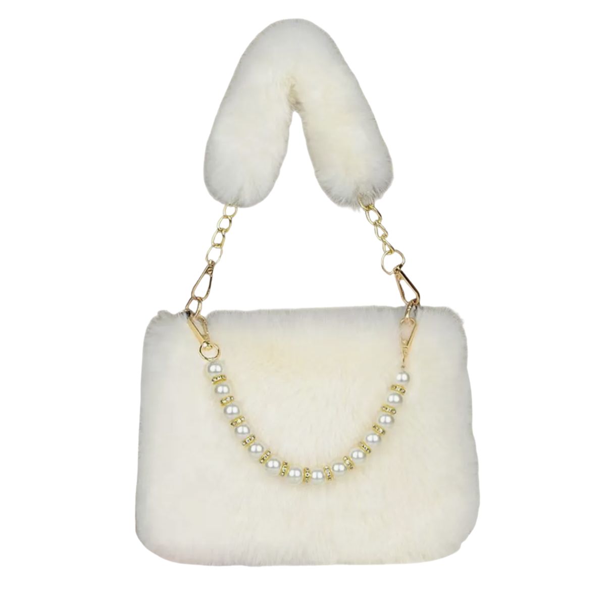 Woman’s pearl Faux Fur Tote Bag handbag フェイク ファー パールハンドル トートバッグ
