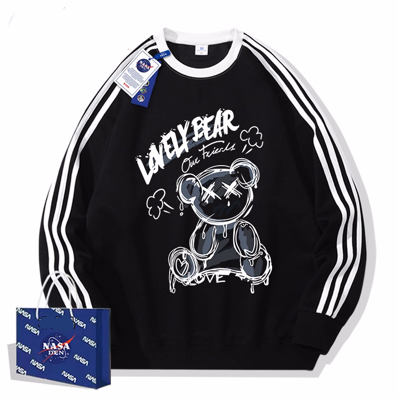Unisex NASA 3-Line Sleeve kaws Bear Print Sweatshirt Print Sweatshirt 男女兼用NASA 3ライン袖カウズベアプリントスウェット プルオーバー トレーナー