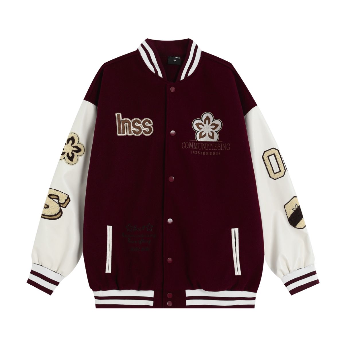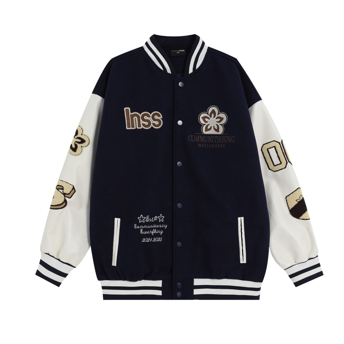 INSS letter & flower embroidery baseball jackets baseball uniform jacket blouson ユニセックス男女兼用 レター & フラワー刺繍 スタジアムジャンパー スタジャン ジャケットブルゾン