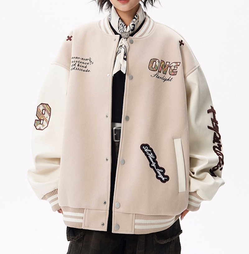 One-letter logo embroidered leather sleeve stadium jacket baseball jackets baseball uniform jacket blouson ユニセックス男女兼用 ONN刺繍 スタジアムジャンパー スタジャン ジャケットブルゾン