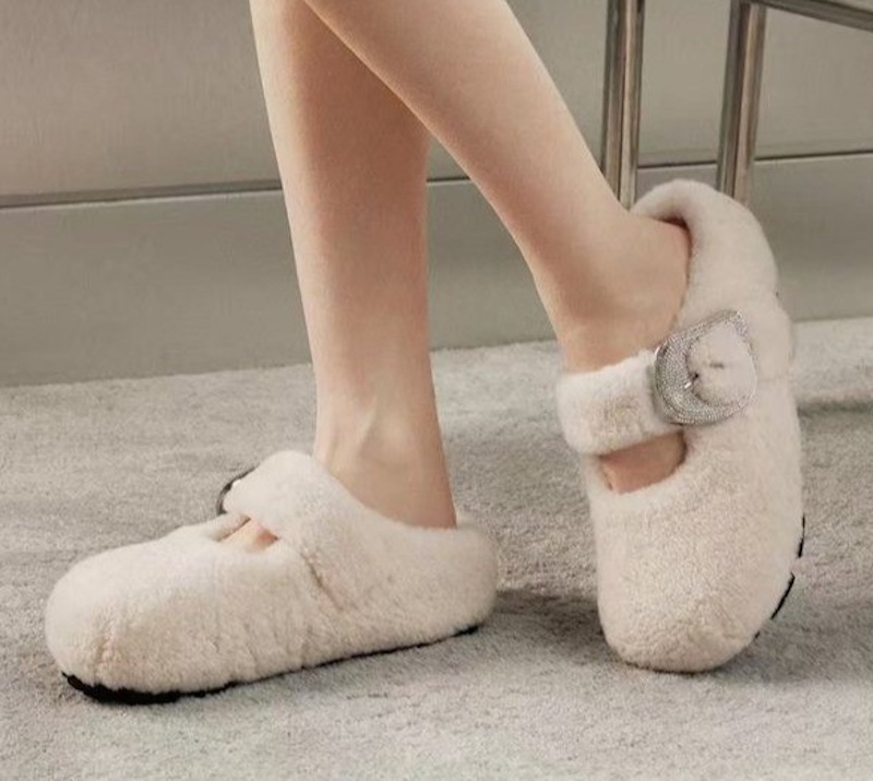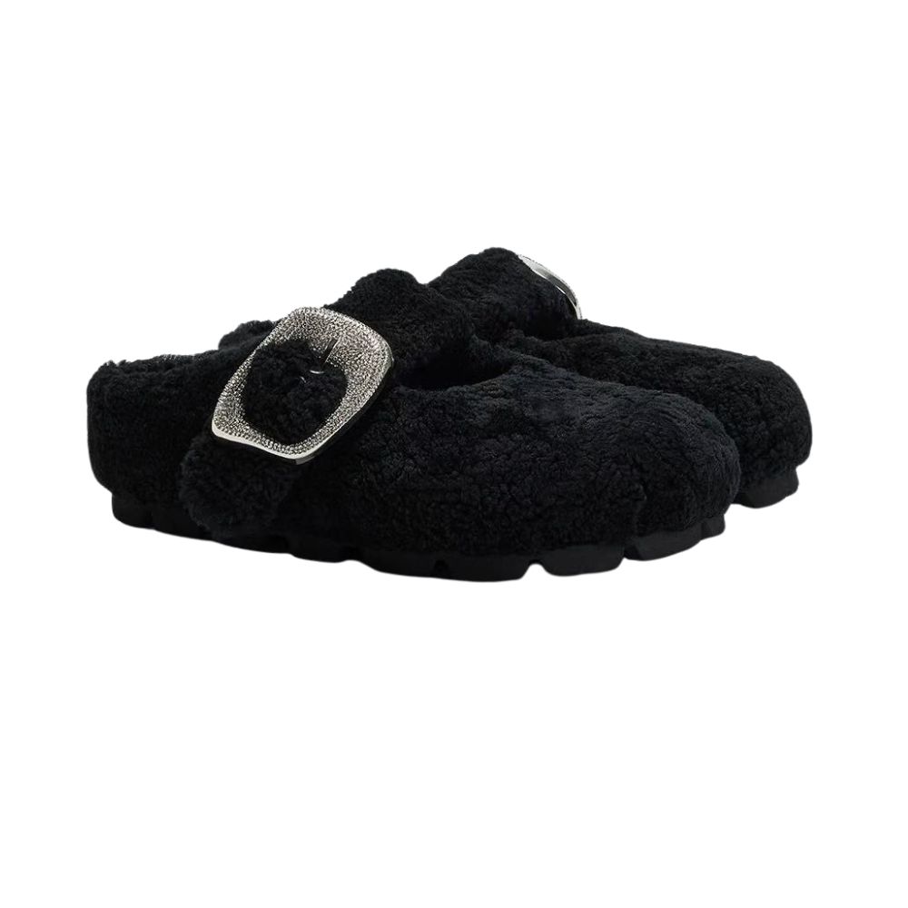 Lambswool platform buckle slipper pumps ラムウール厚底バックルスリッパパンプス