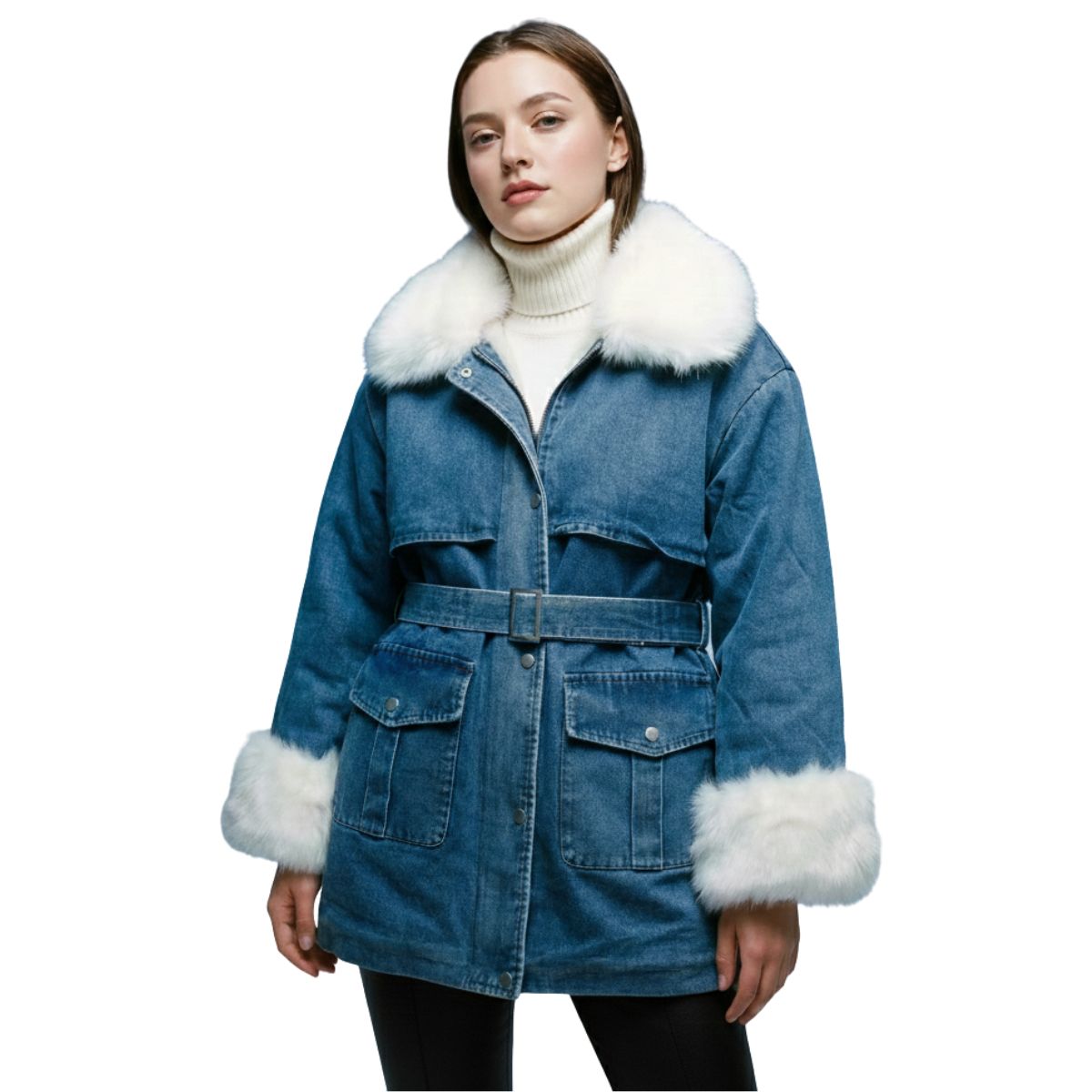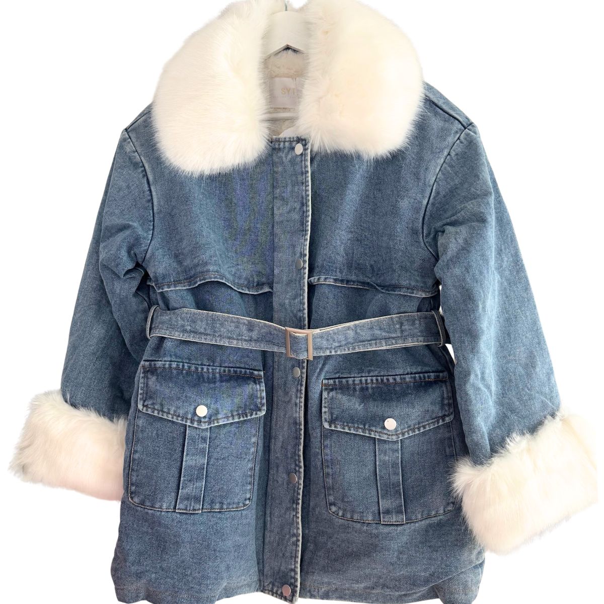 SALE Faux fur collar down jacket denim jacket coat ファーカラー & ライナー ダウン付 デニムコート