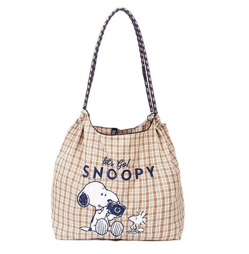 Checkered x Snoopy Eco Shopping Bag チェック×スヌーピー刺繍トートショルダーエコショッピングバック