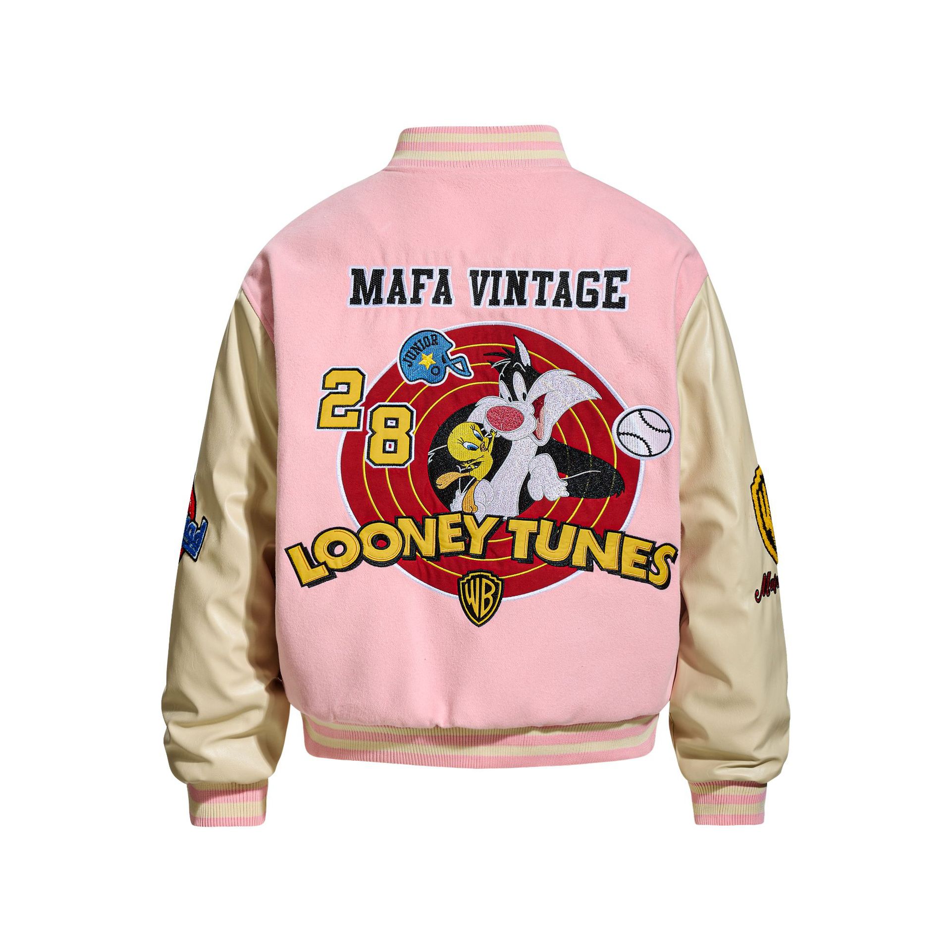 Unisex Looney tunes tweety leather stadium jacket baseball uniform blouson ユニセックス 男女兼用 ルーニー・テューンズ トゥイーティー レザー スタジアムジャンパー スタジャン MA-1 ボンバー ジャケット ブルゾン