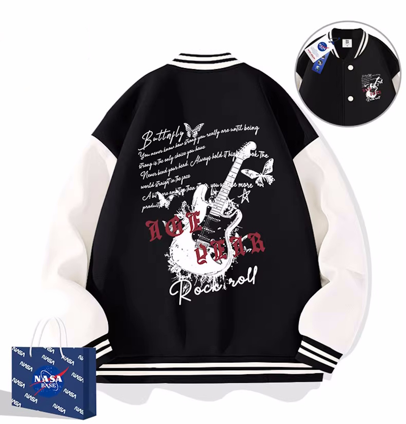 Rock and roll guitar jacket baseball uniform jacket blouson ユニセックス 男女兼用 ロックンロールギター刺繍 ジャケット スタジアムジャンパー スタジャン ジャケットブルゾン