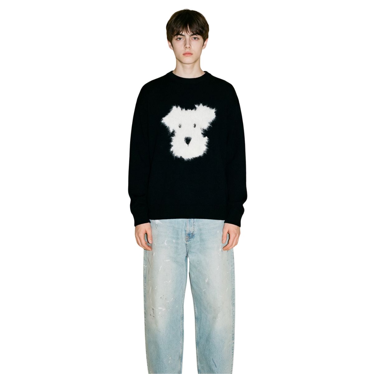 Unisex Fluffy puppy round neck sweater knit 男女兼用 モコモコパピーラウンドネックセーターニット