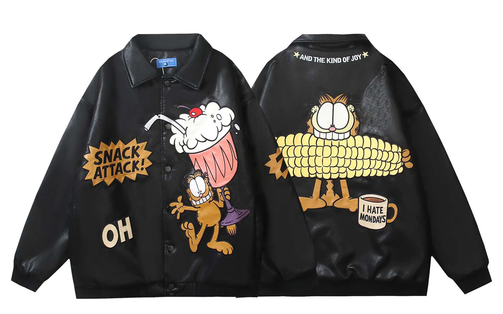Garfield embroidered leather jacket stadium baseball uniform jacket blouson ユニセックス 男女兼用 ガーフィールド刺繍レザージャケットスタジアムジャンパー スタジャン ジャケットブルゾン